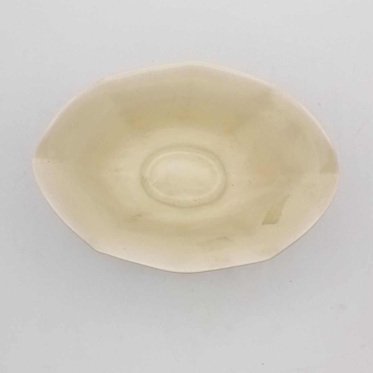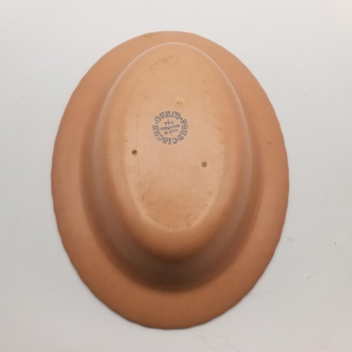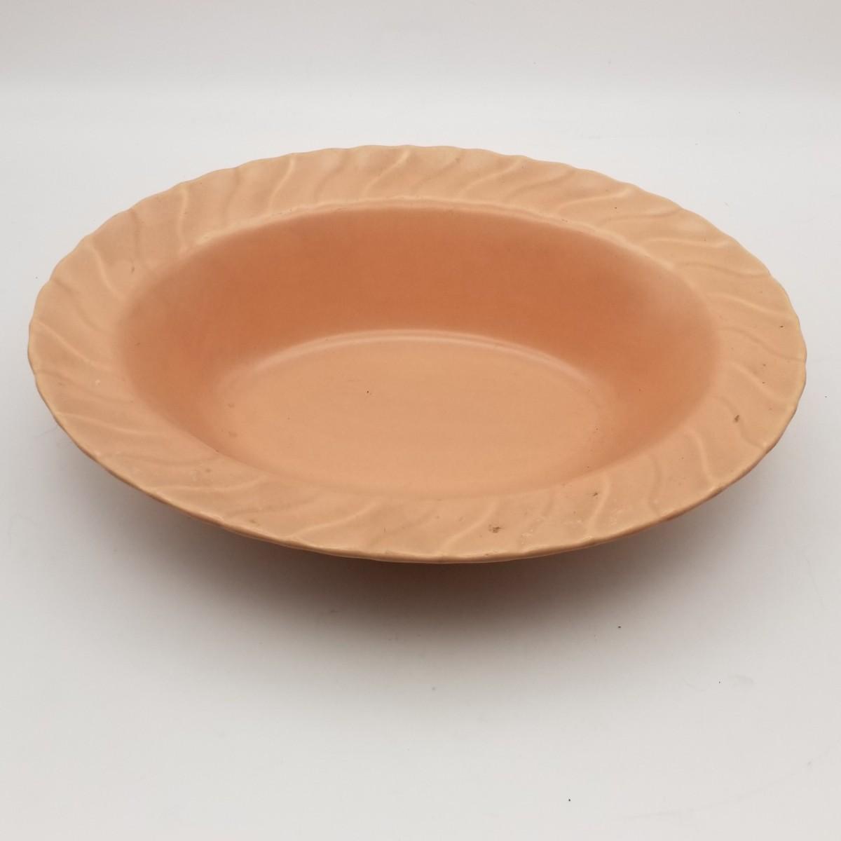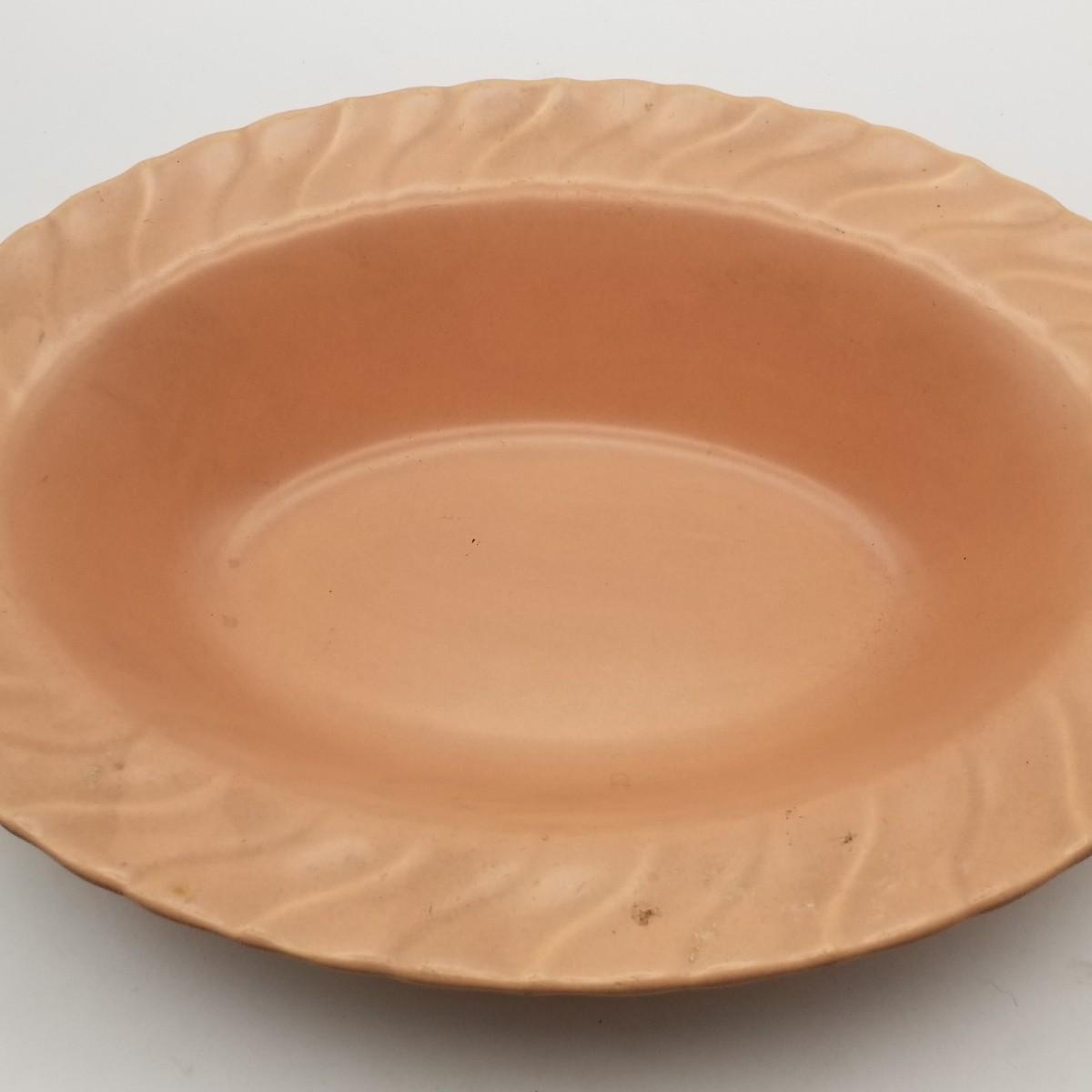 MCM Coral / Peach Oval Coronado Franciscanware Swirl Serving Plate Bowl (California USA) Mid Century Modern 1940s, approximately 10 1/2 wide x 8 x 2 1/4 inches.