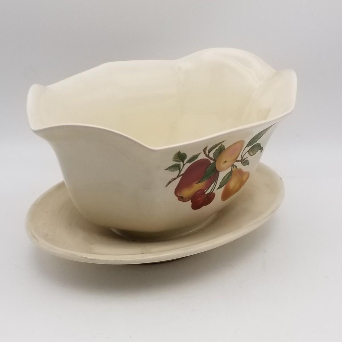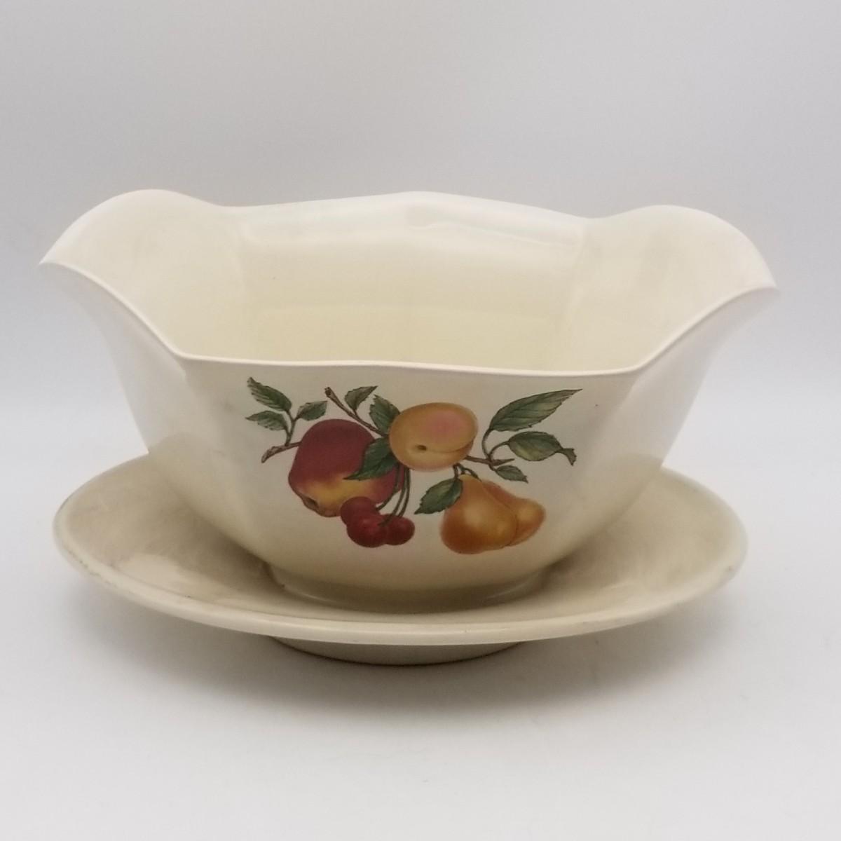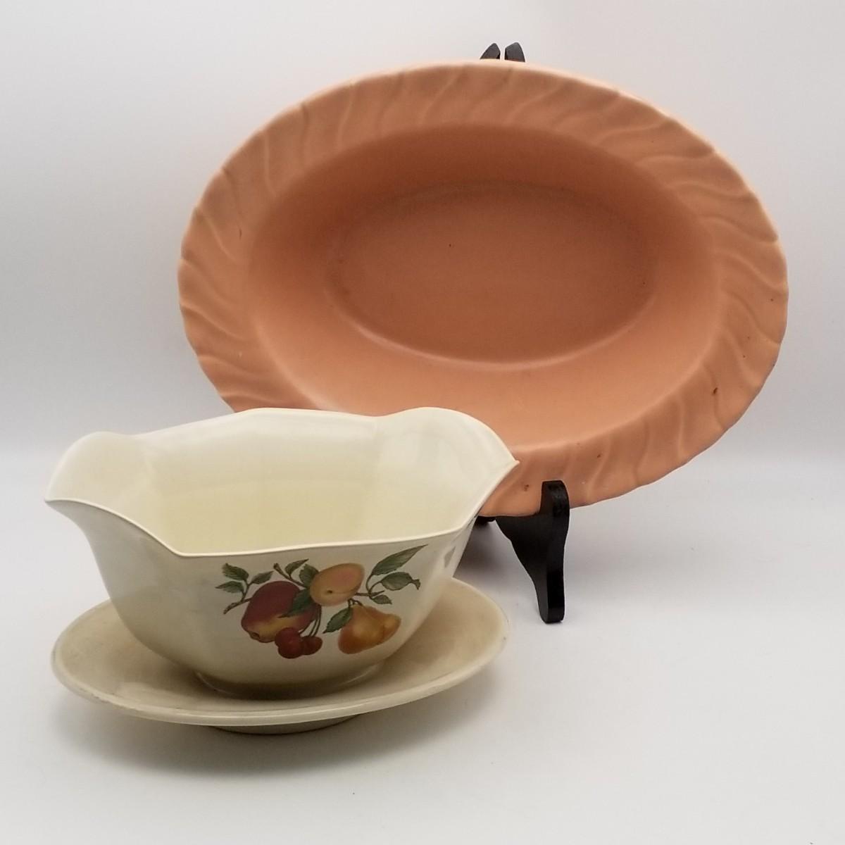 Lot of Vintage: MCM Coral / Peach Oval Coronado Franciscanware Swirl Serving Plate Bowl (California USA) Mid Century Modern 1940s, Telaflora Planter with Vintage Fruit Illustration