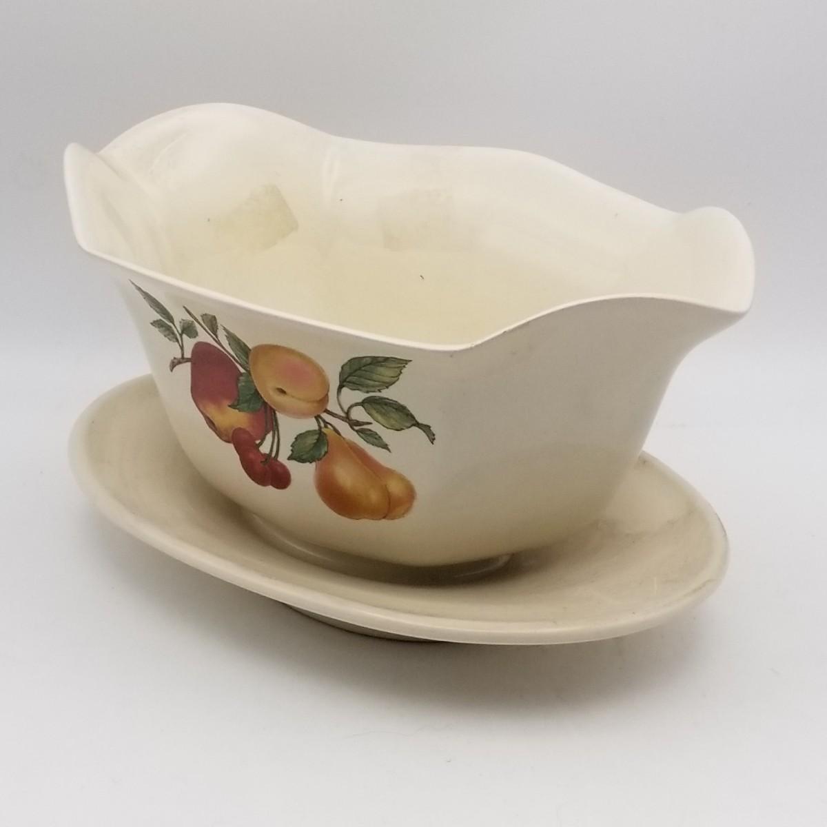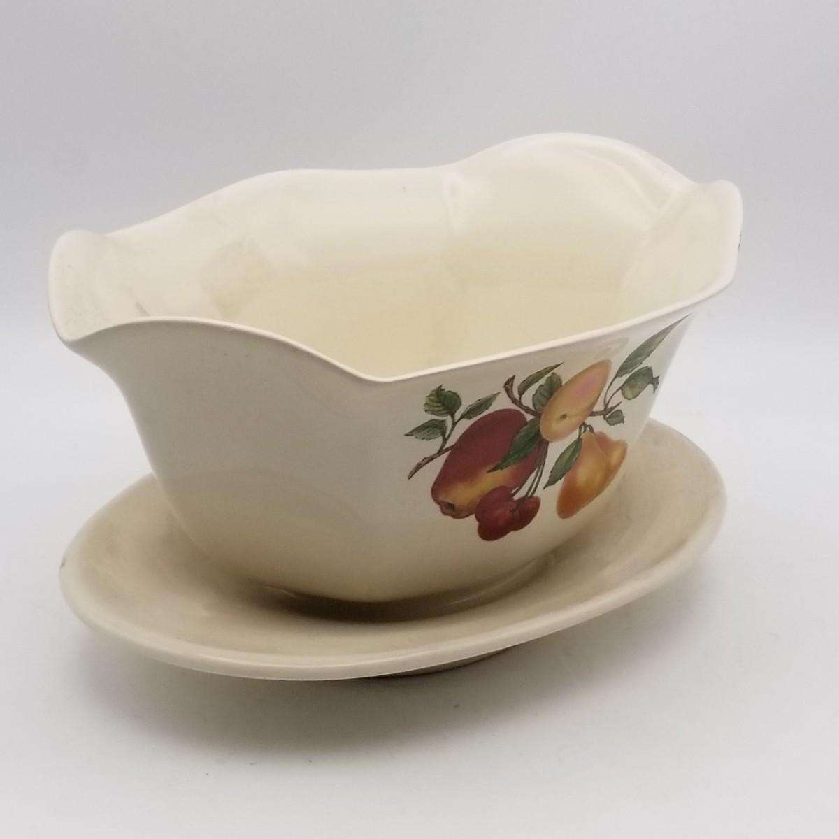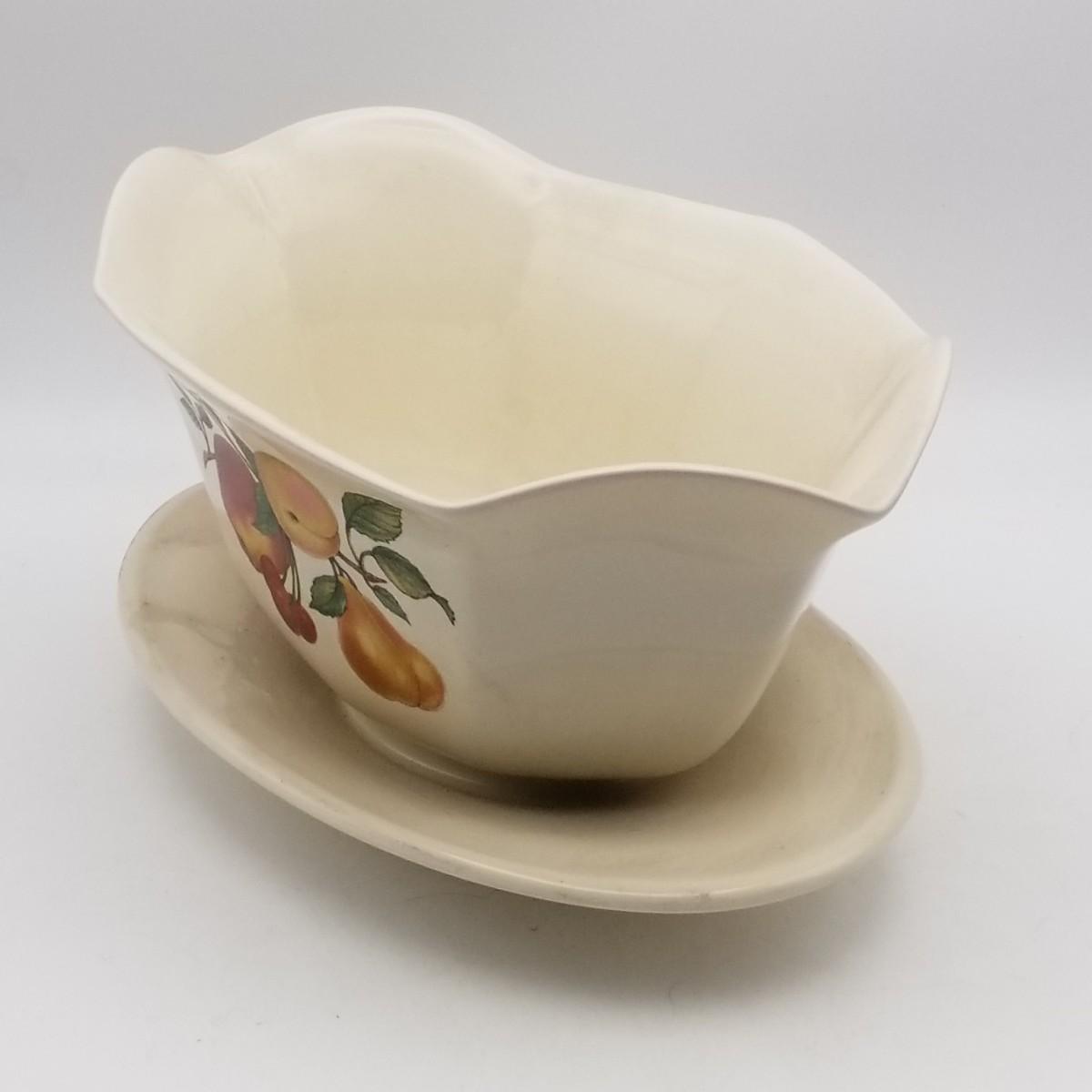 Lot of Vintage: MCM Coral / Peach Oval Coronado Franciscanware Swirl Serving Plate Bowl (California USA) Mid Century Modern 1940s, Telaflora Planter with Vintage Fruit Illustration