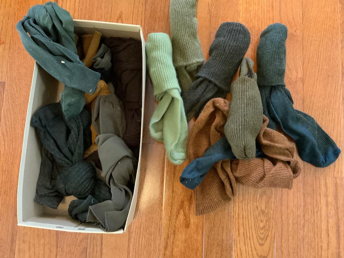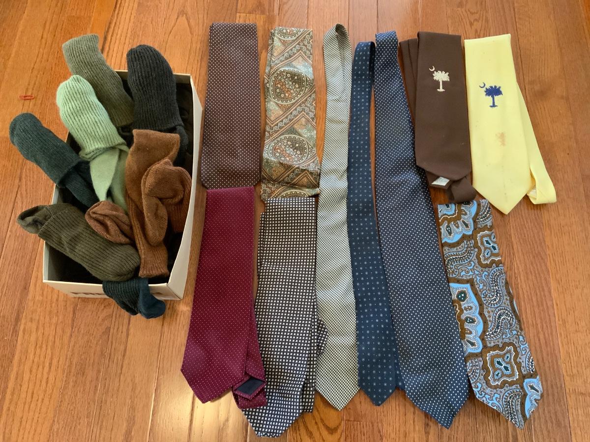 Lot of Vintage Men’s ties, including Silk. Also includes a box of men’s dress and casual socks