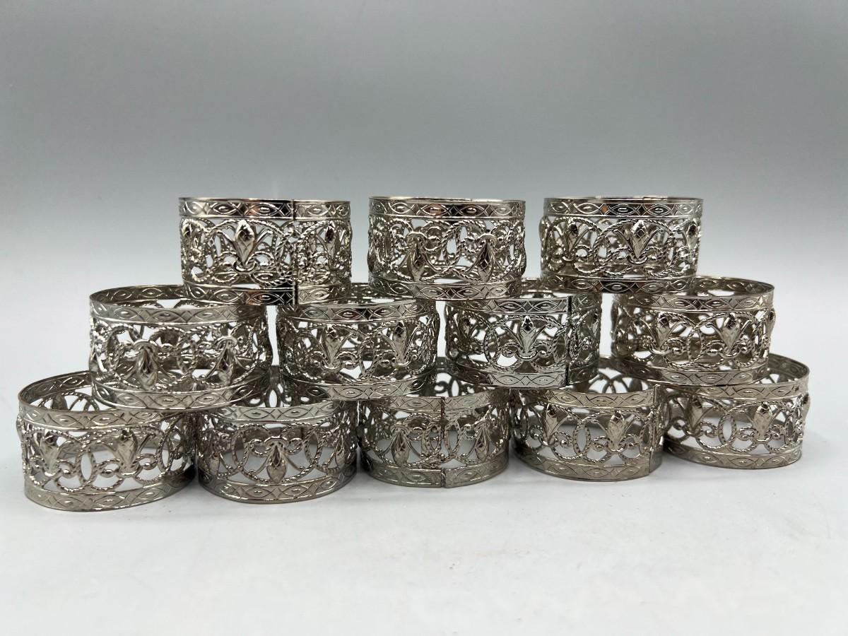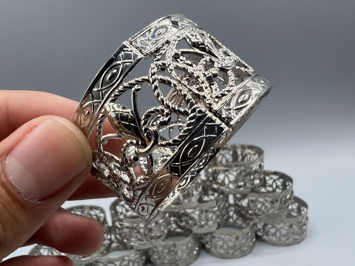 Lot of Vintage Metal French Style Ornate Silver Filigree Dinnerware Napkin Holders