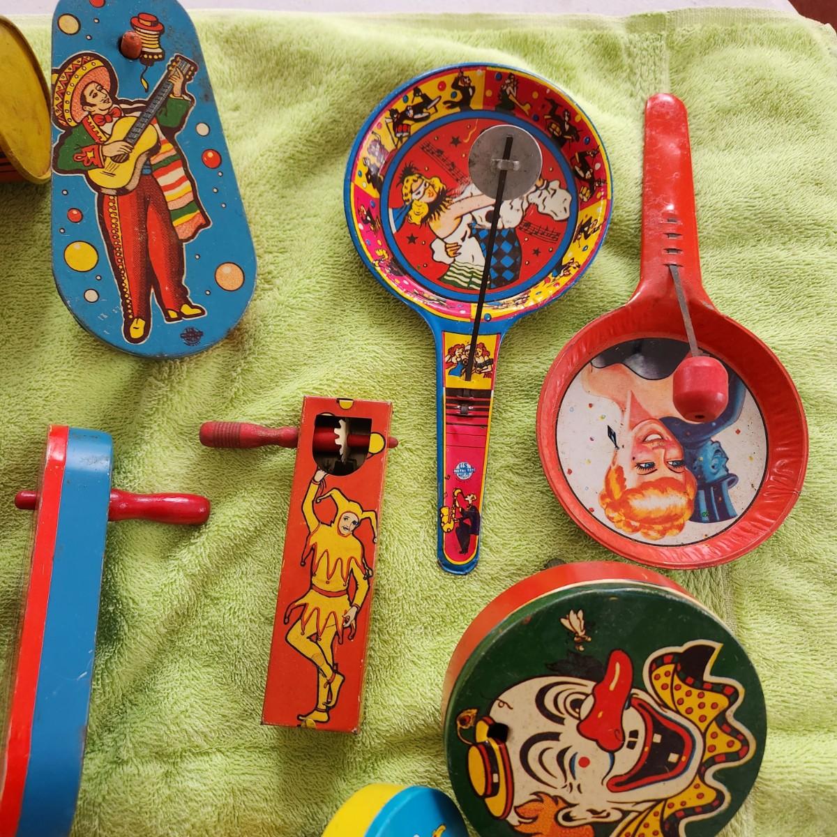 Lot of Vintage Metal Noisemakers US Metal Toy
