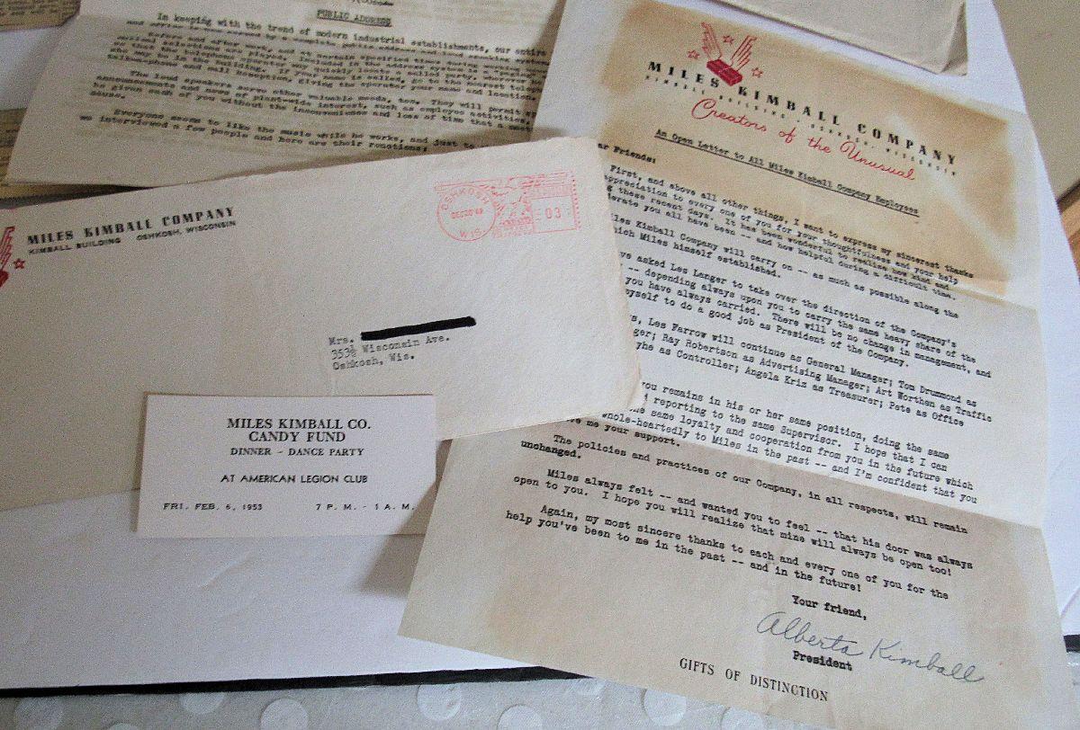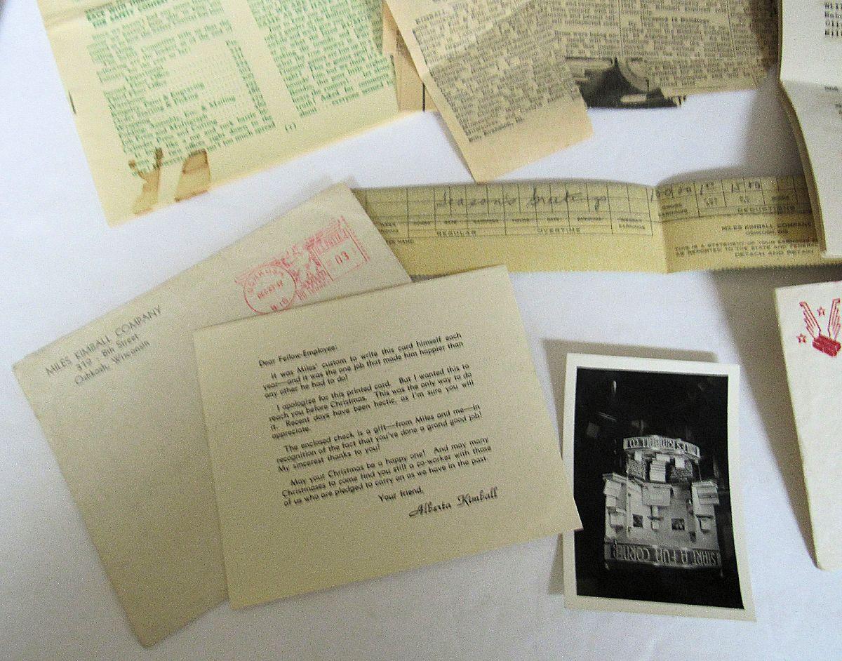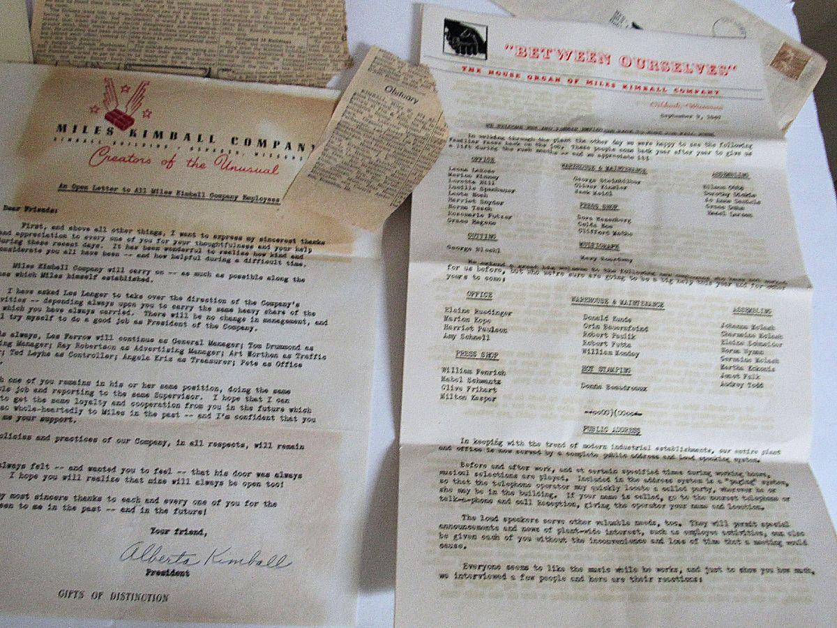 Lot of Vintage Miles Kimball Co, Oshkosh, WI Paper Memorabilia, Newsletters, Clippings, Photo, More