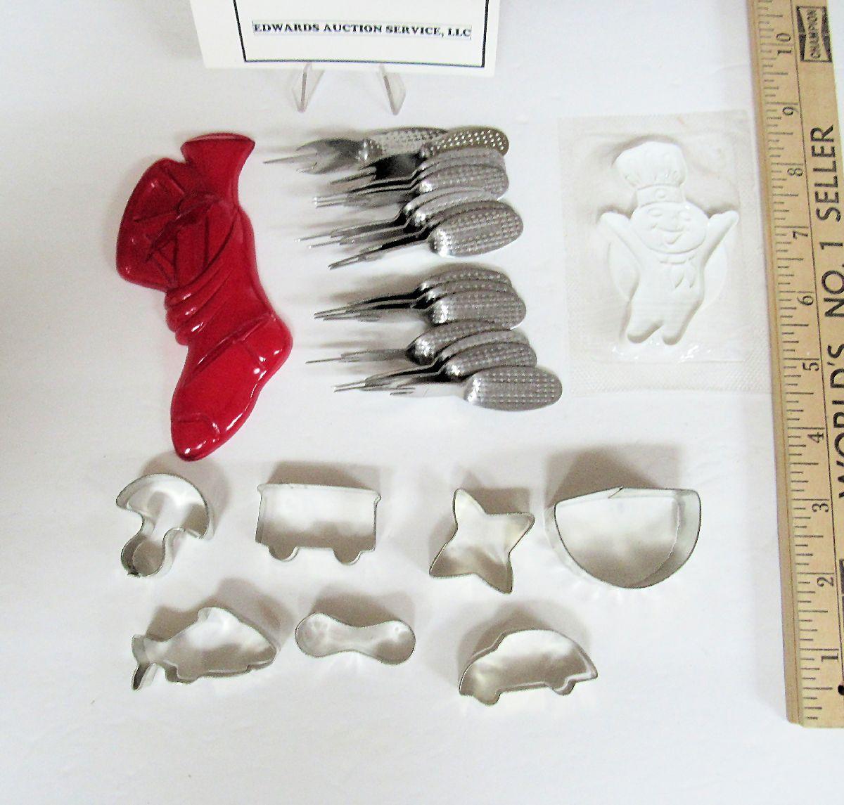 Lot of Vintage Miniature GERMAN Cookie Cutters and 2 Plastic, Set of Corn Cob Forks
