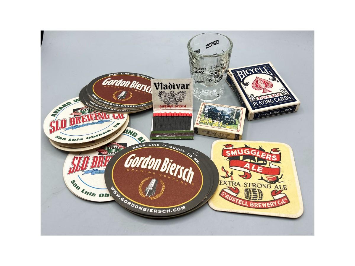 Lot of Vintage Miscellaneous Cowboy Barware Matches, Las Vegas Shot Glass, Beer Coasters & More