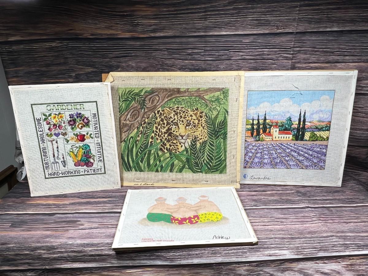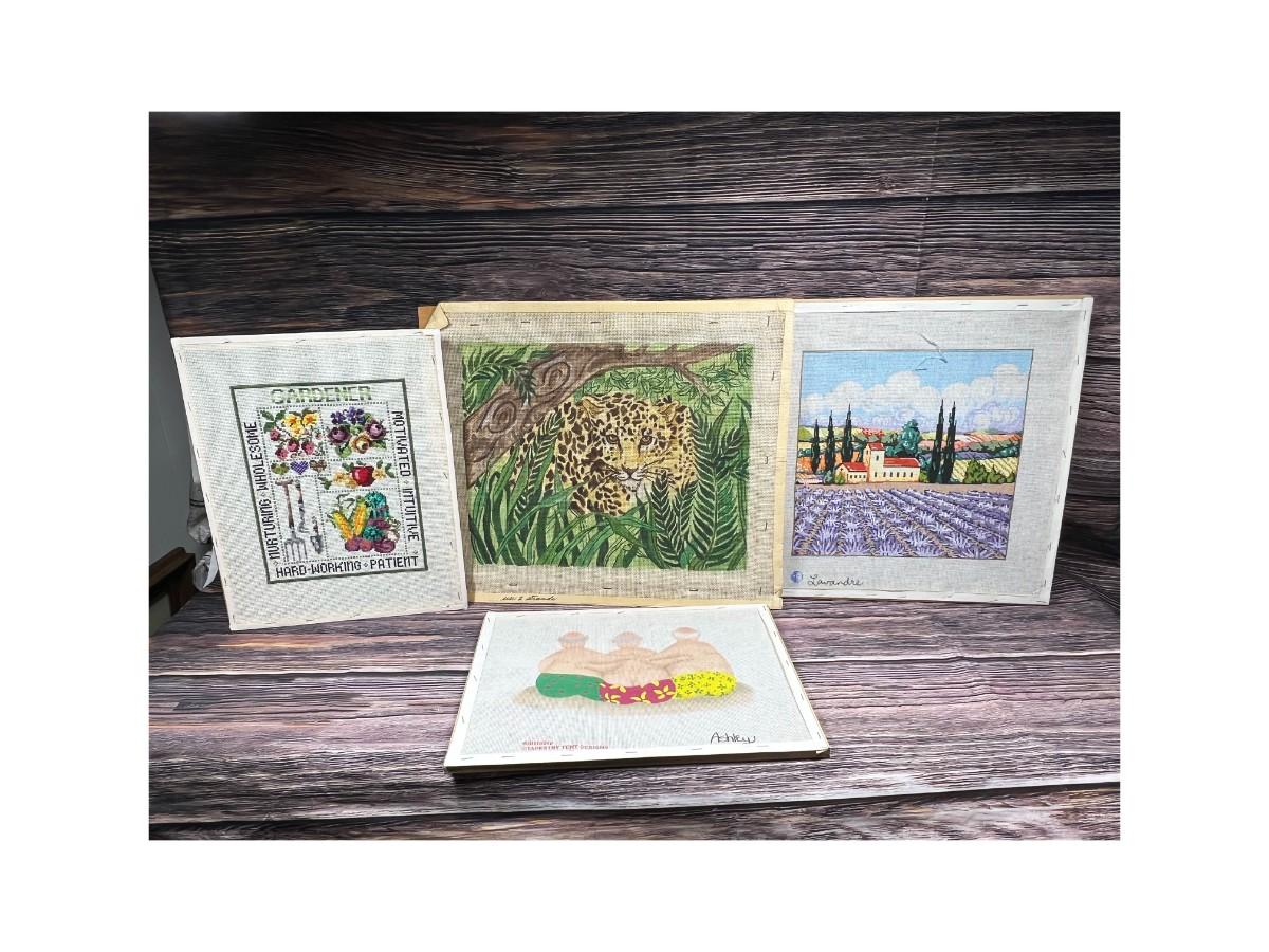 Lot of Vintage Mounted Signed Needlepoint Collectible Designs with Artist Signature