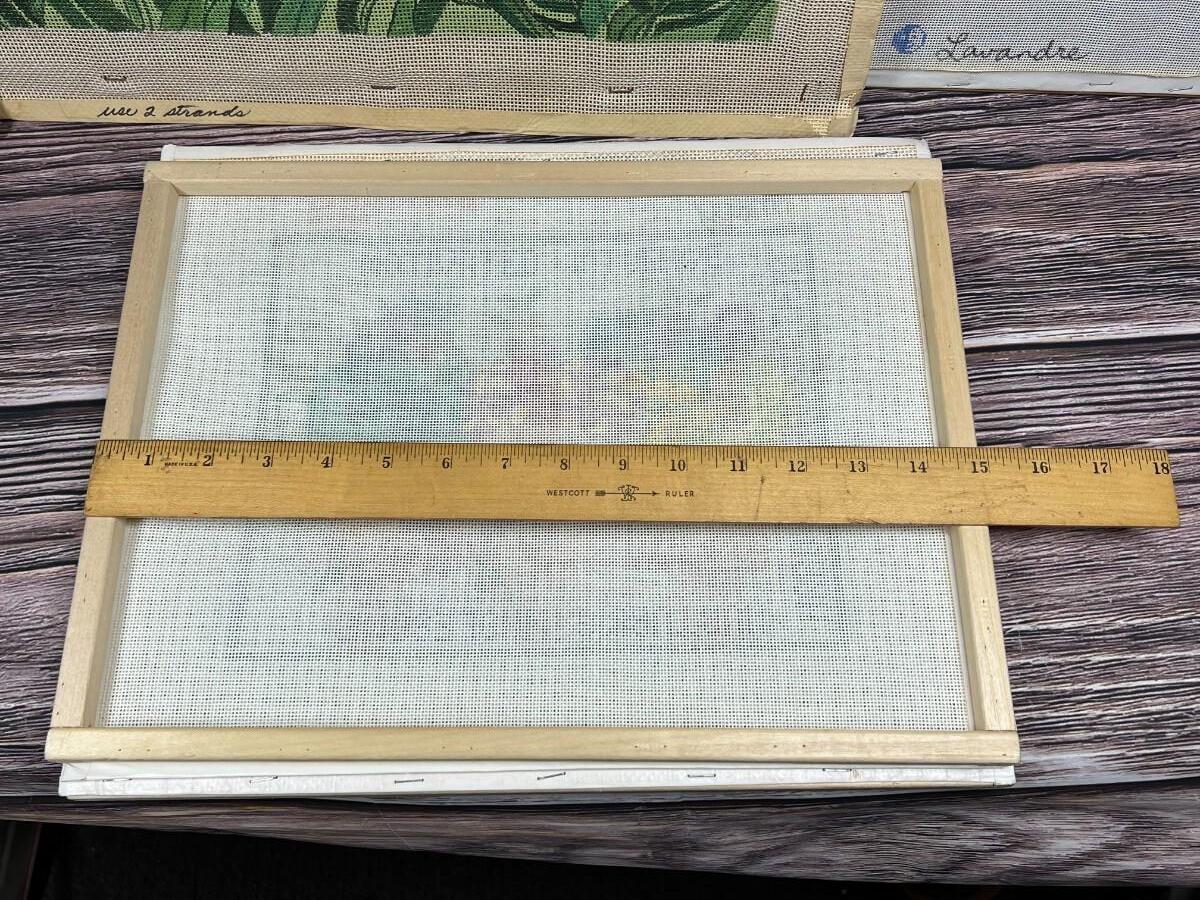 Lot of Vintage Mounted Signed Needlepoint Collectible Designs with Artist Signature, there is some minor wear to the needle point designs, but there is no significant damage and is in overall good condition. Check pictures for more details and for sizing.