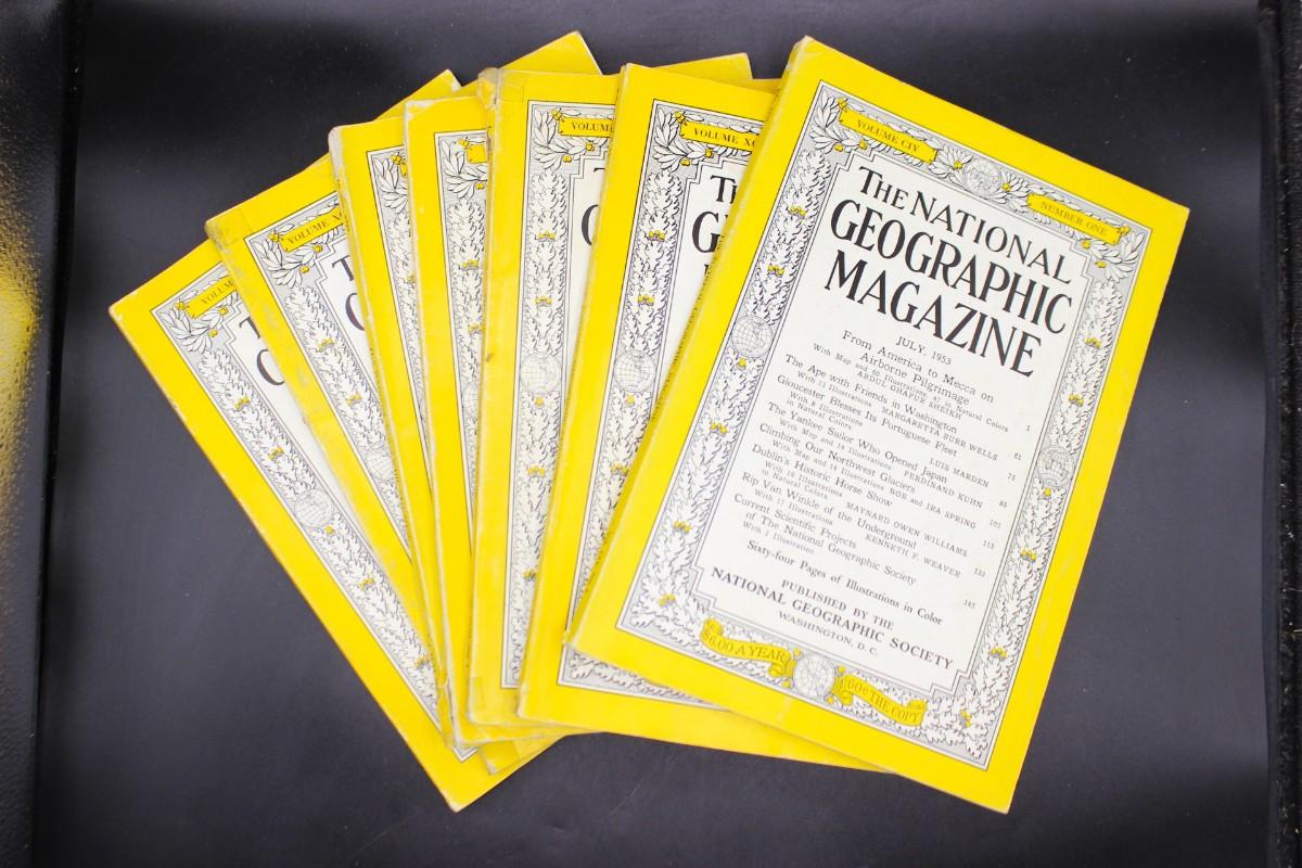 Lot of Vintage National Geographic Magazines 1948 - 1954, there is some vintage wear to some magazines including some tearing and ripping, but there is no significant damage and is in good vintage condition. The lot comes with 7 magazines, check pictures for more details and for sizing.