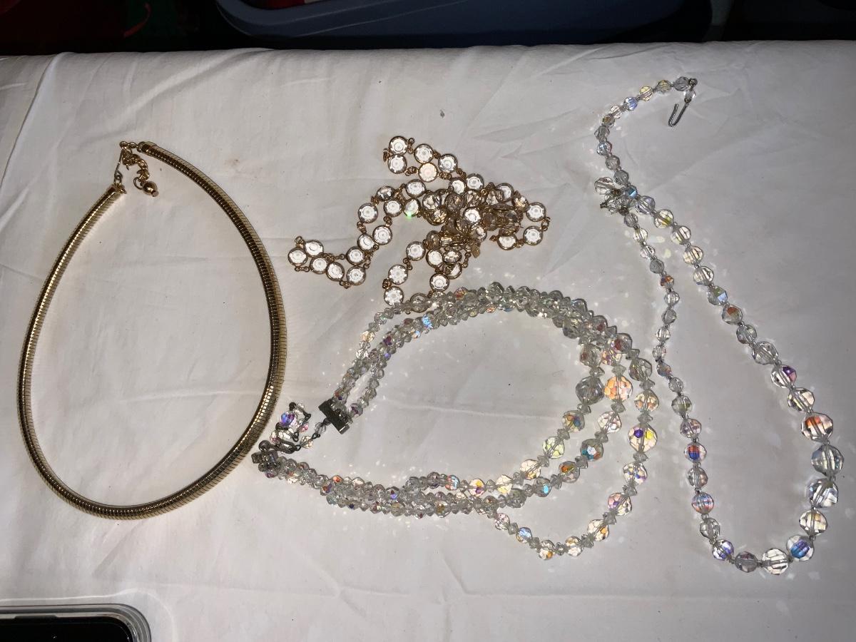 Gold toned Necklace marked Napier. Other necklaces are Vintage Crystal. Beautiful Lot!