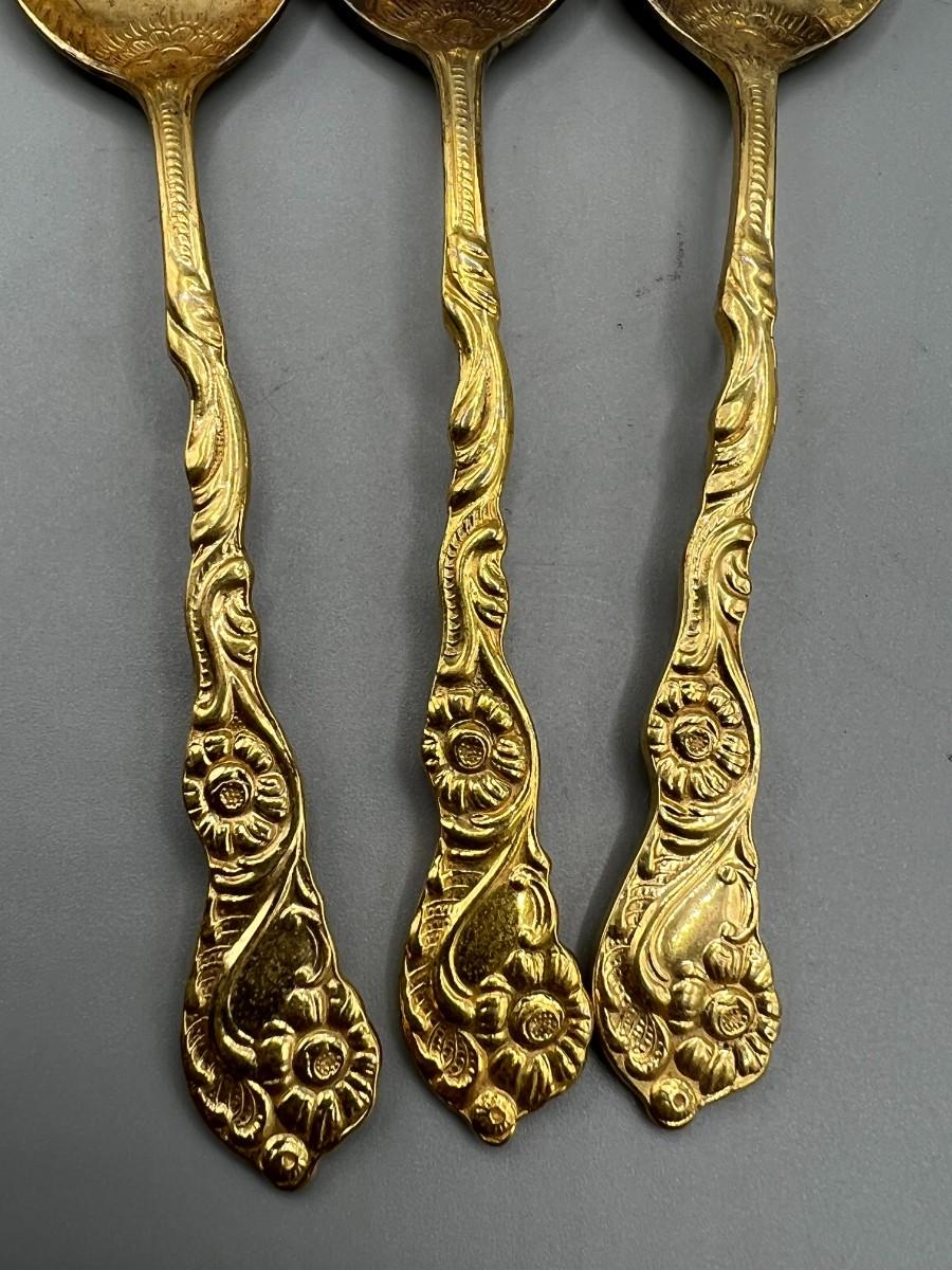 Lot of Vintage Nilsjohan E.P. NS ALP Swedish Gold Silver Plate Mid Century Cocktail Spoons, there is no signifncant damage to the spoons and is in good vintage condition. Check pictures for more details and for sizing.