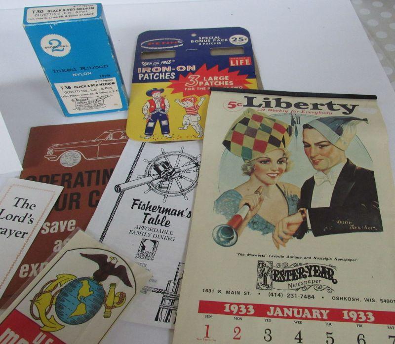 Lot of Vintage Paper Items, and Typewriter Ribbon, Patches