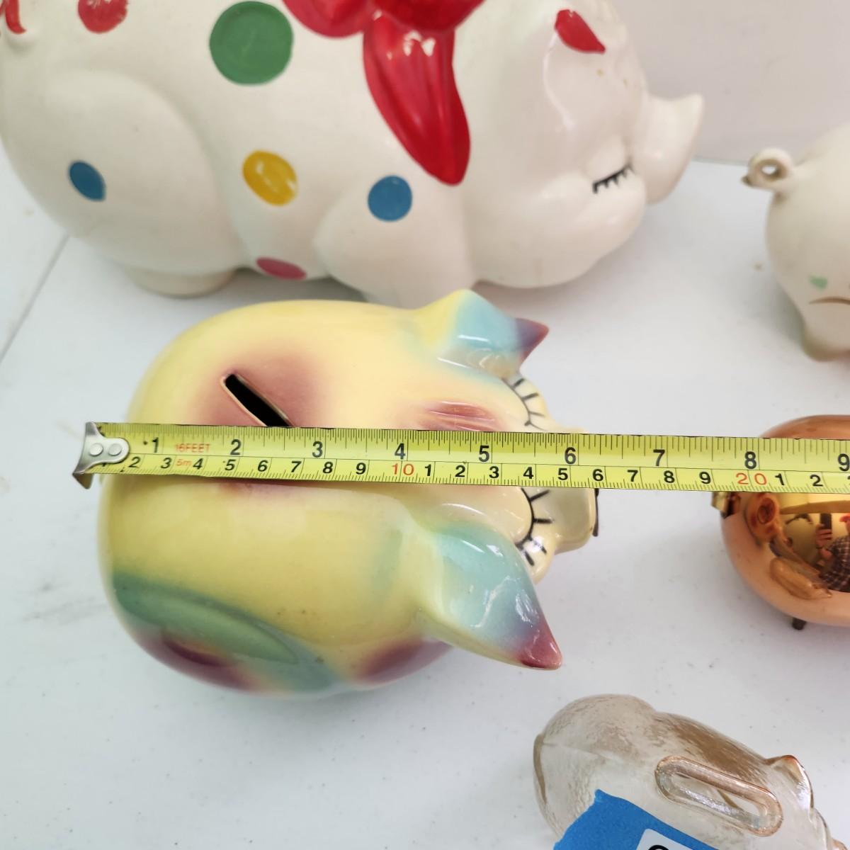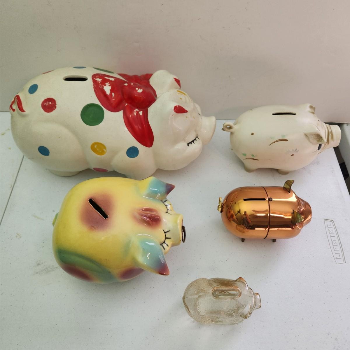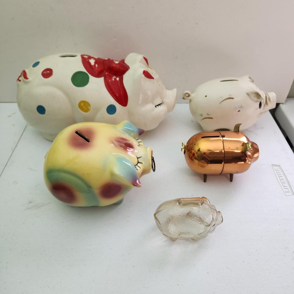 Lot of Vintage Piggy Banks Corky Pig 1957 , Ellgreave England, Glass , Copper, Ceramic