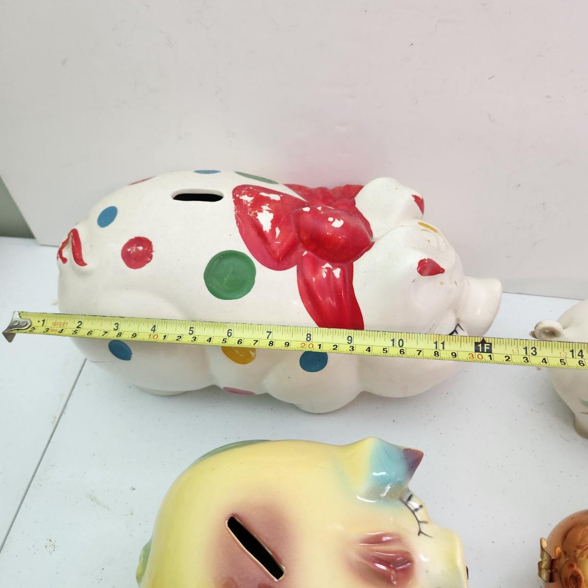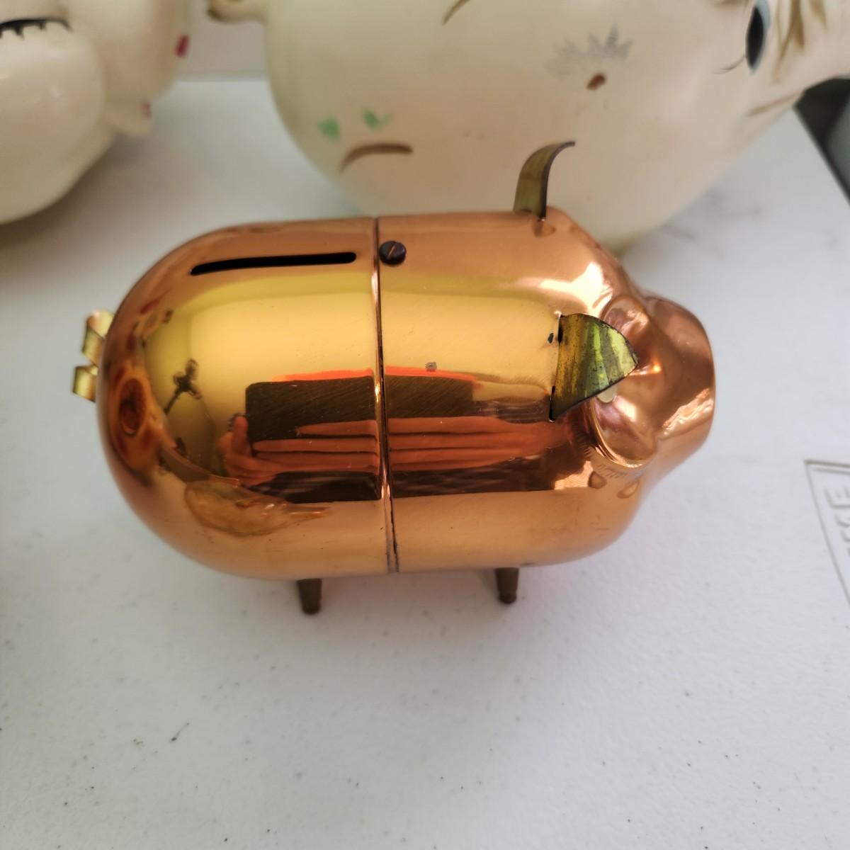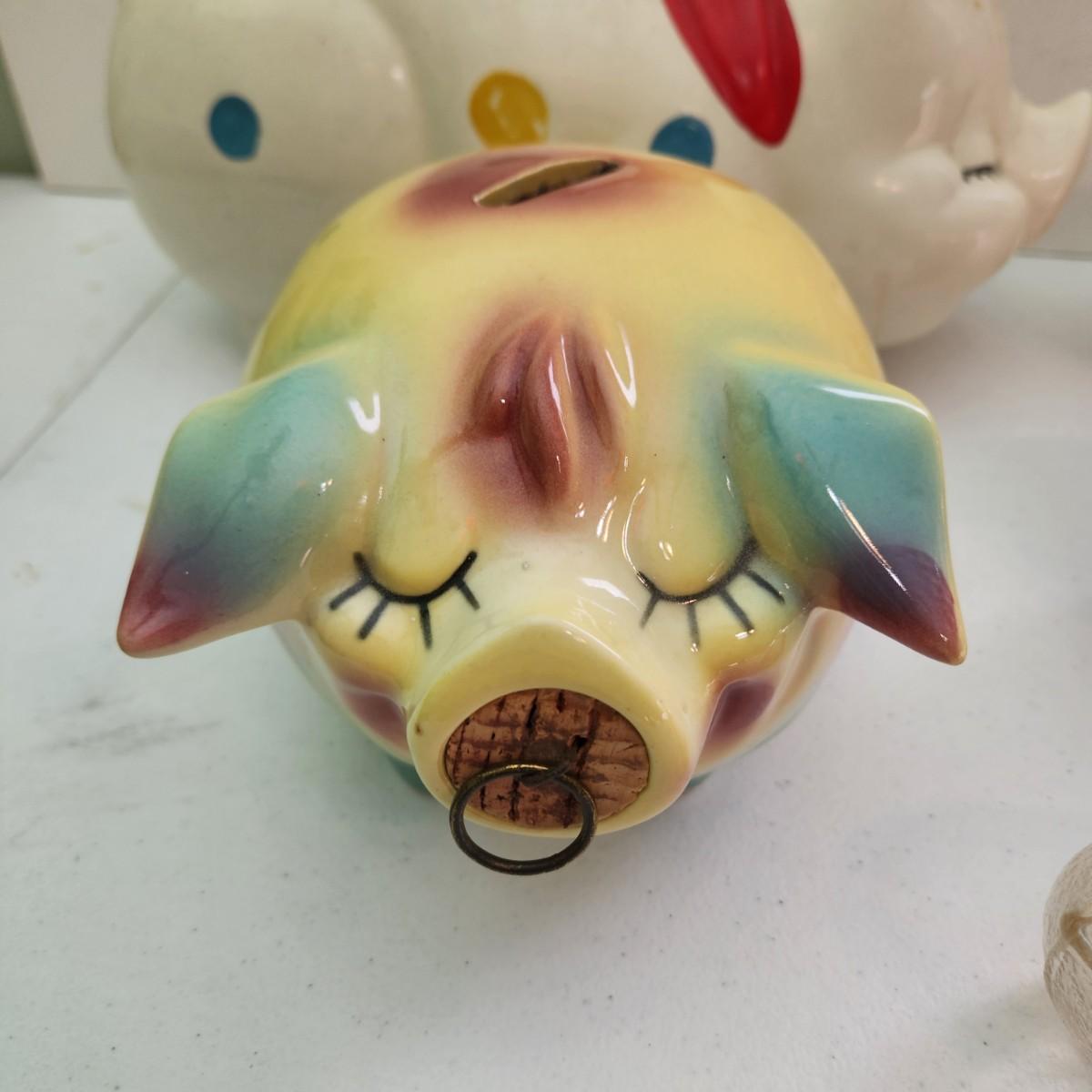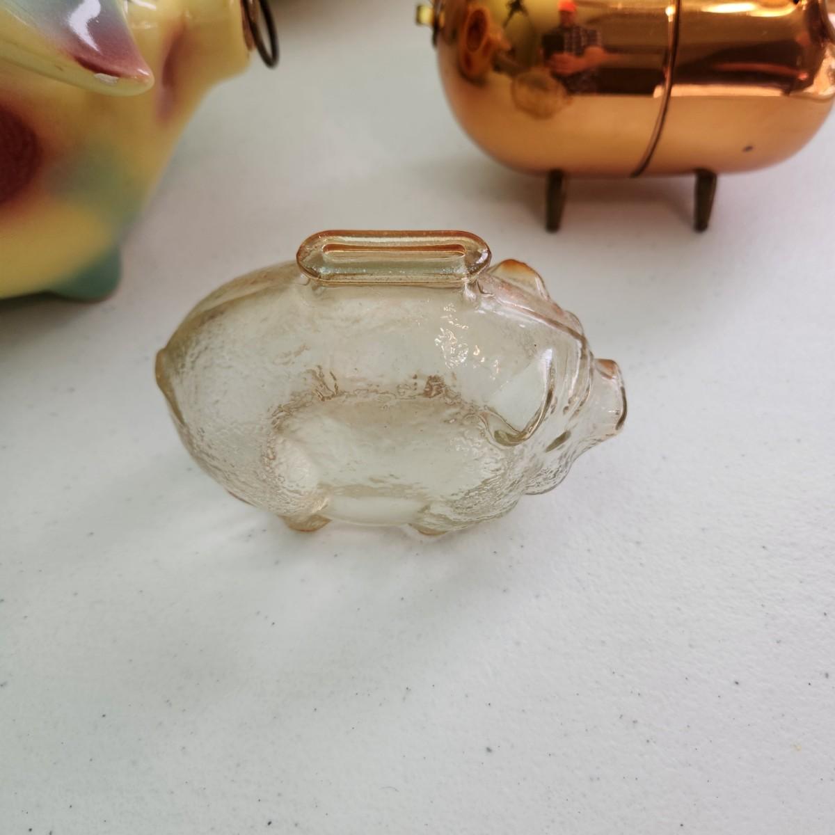 Lot of Vintage Piggy Banks Corky Pig 1957 , Ellgreave England, Glass , Copper, Ceramic
