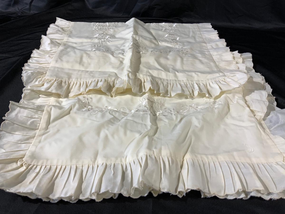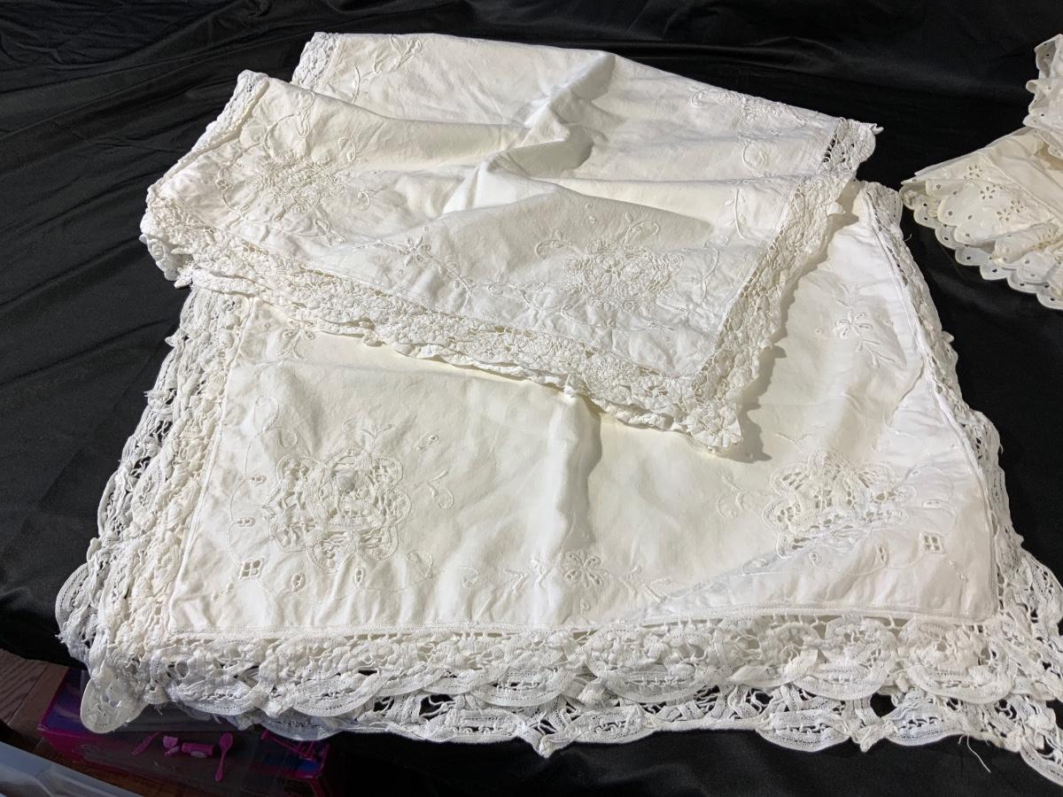 lack of vintage pillow shams with lace and embroidery on some. Please note some visible flaws..