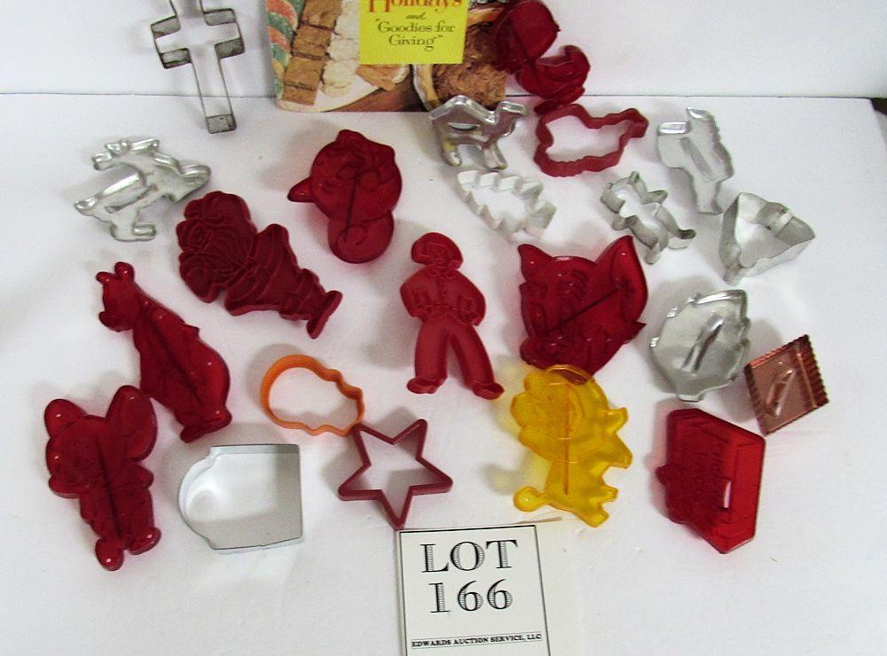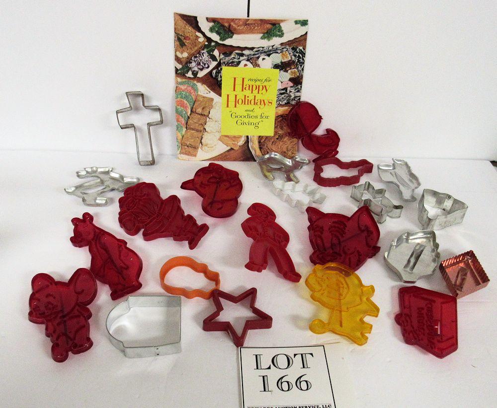Lot of Vintage Plastic and Metal Cookie Cutters and Old Cook Book