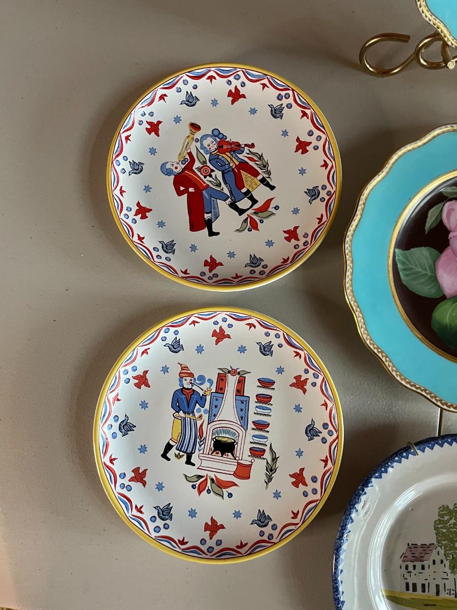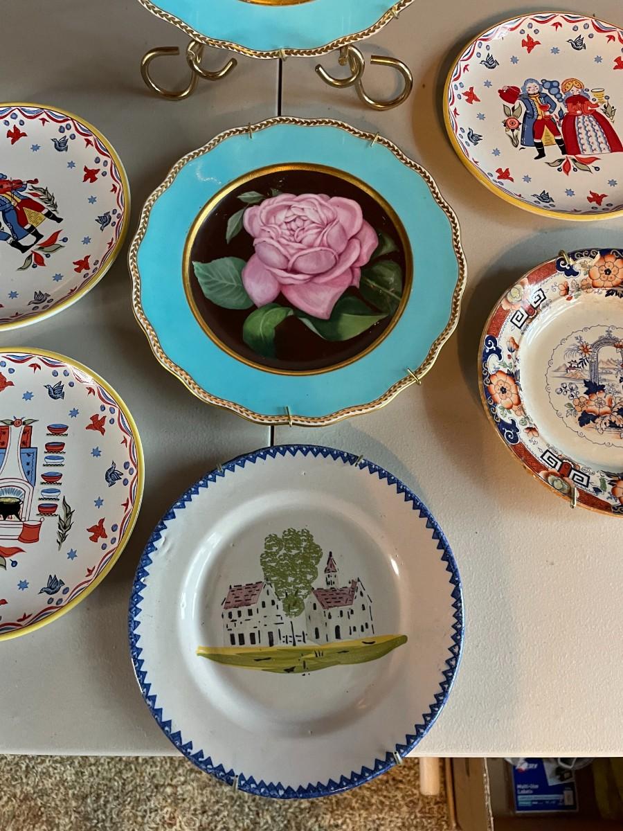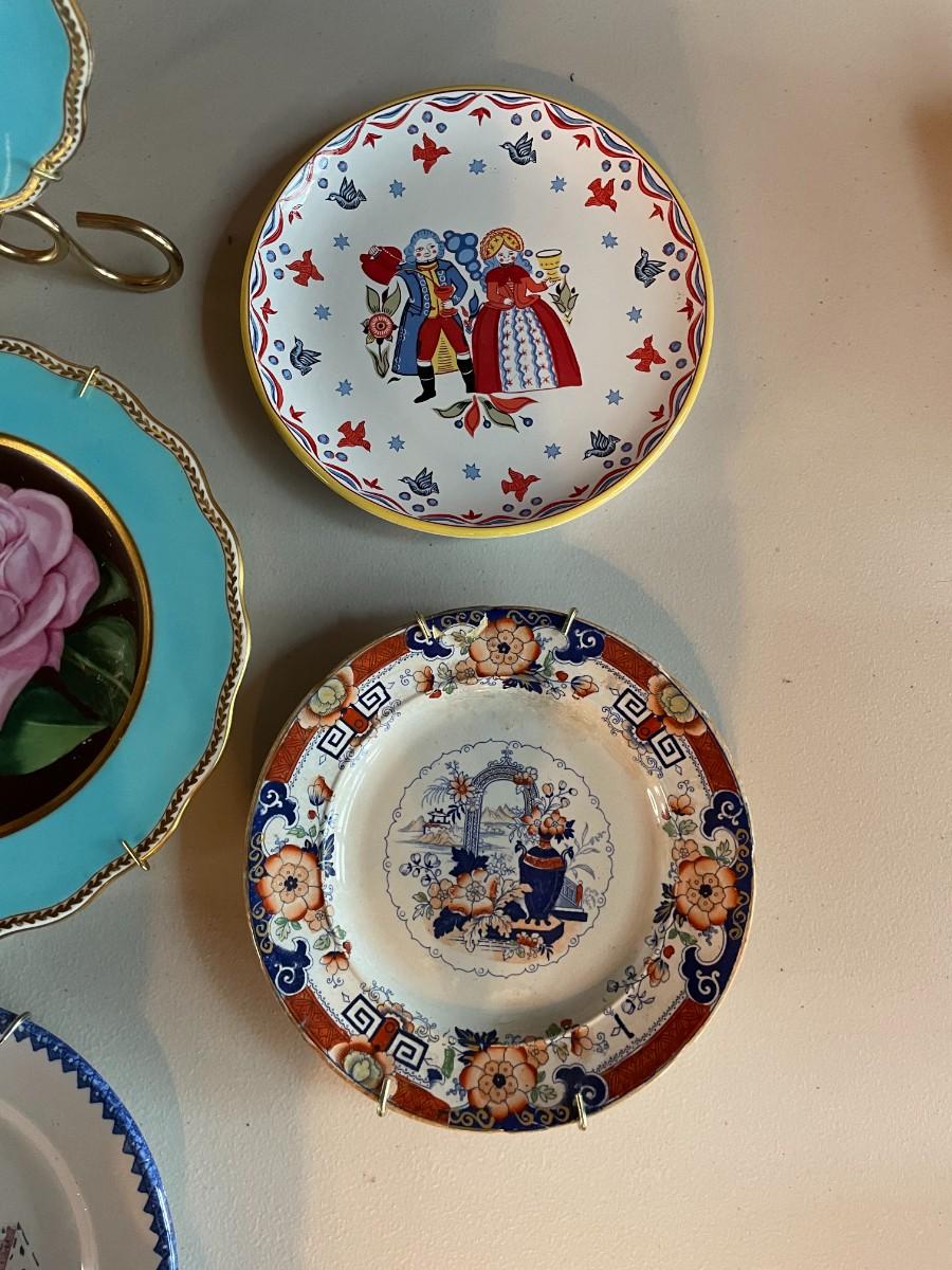 Largest: 10W. Block Bernards. Portugal Folk Art plates, Knight, Elgin & Co Colored Japan-Style Pattern Plate , Vintage 1900 French Caroled Faienc Plate, Vintage Floral Hand Painted plates.