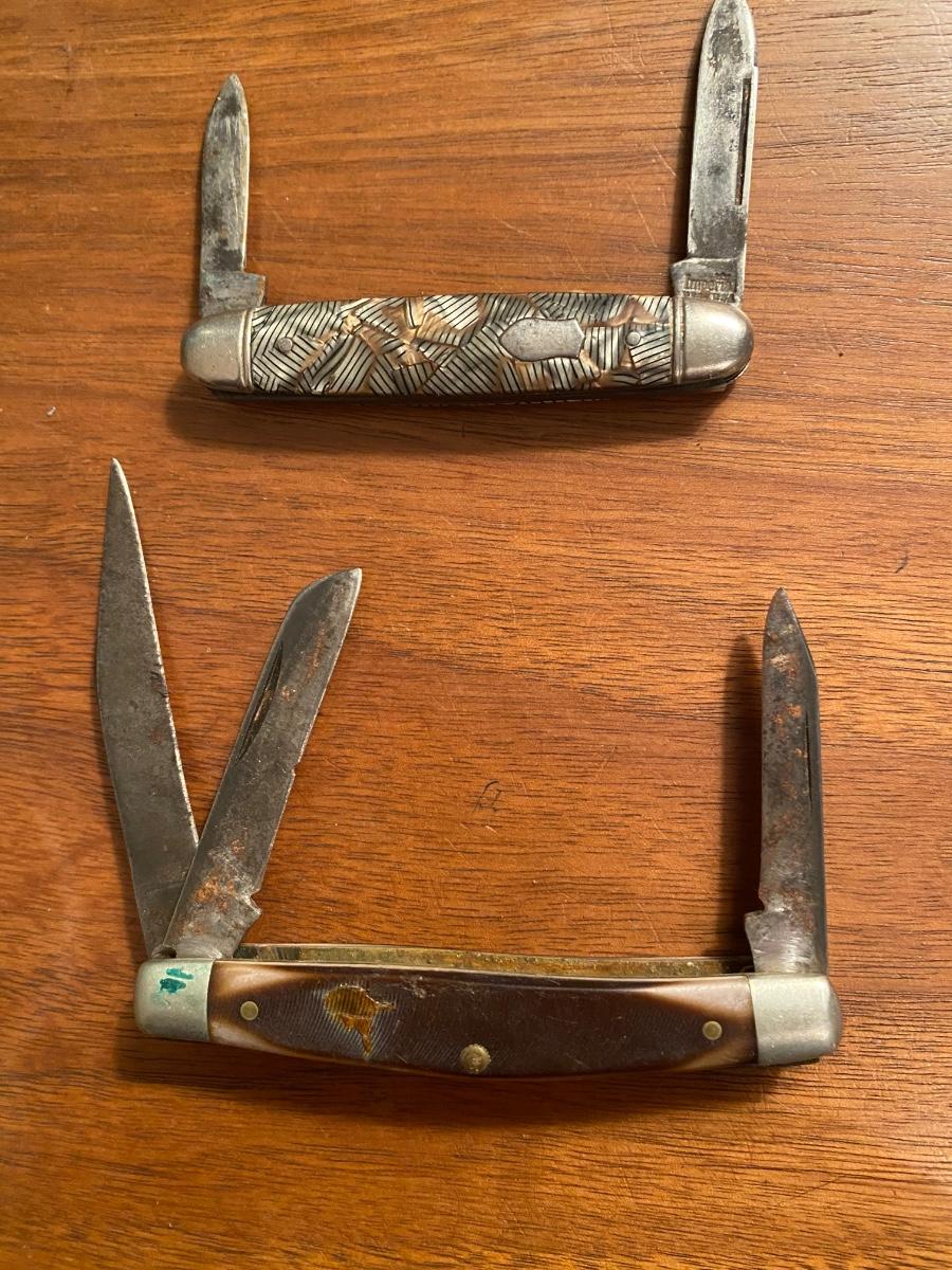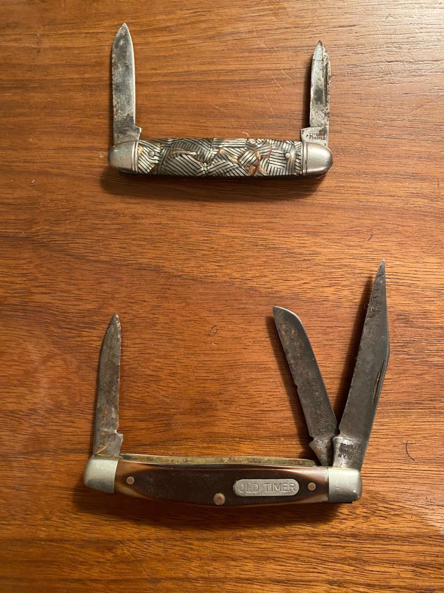Lot of vintage pocket knives. “Old Timer” (approx 3-1/4” L) - minor damage on the back; and Imperial (approx 2-3/4” L). Good vintage condition.
