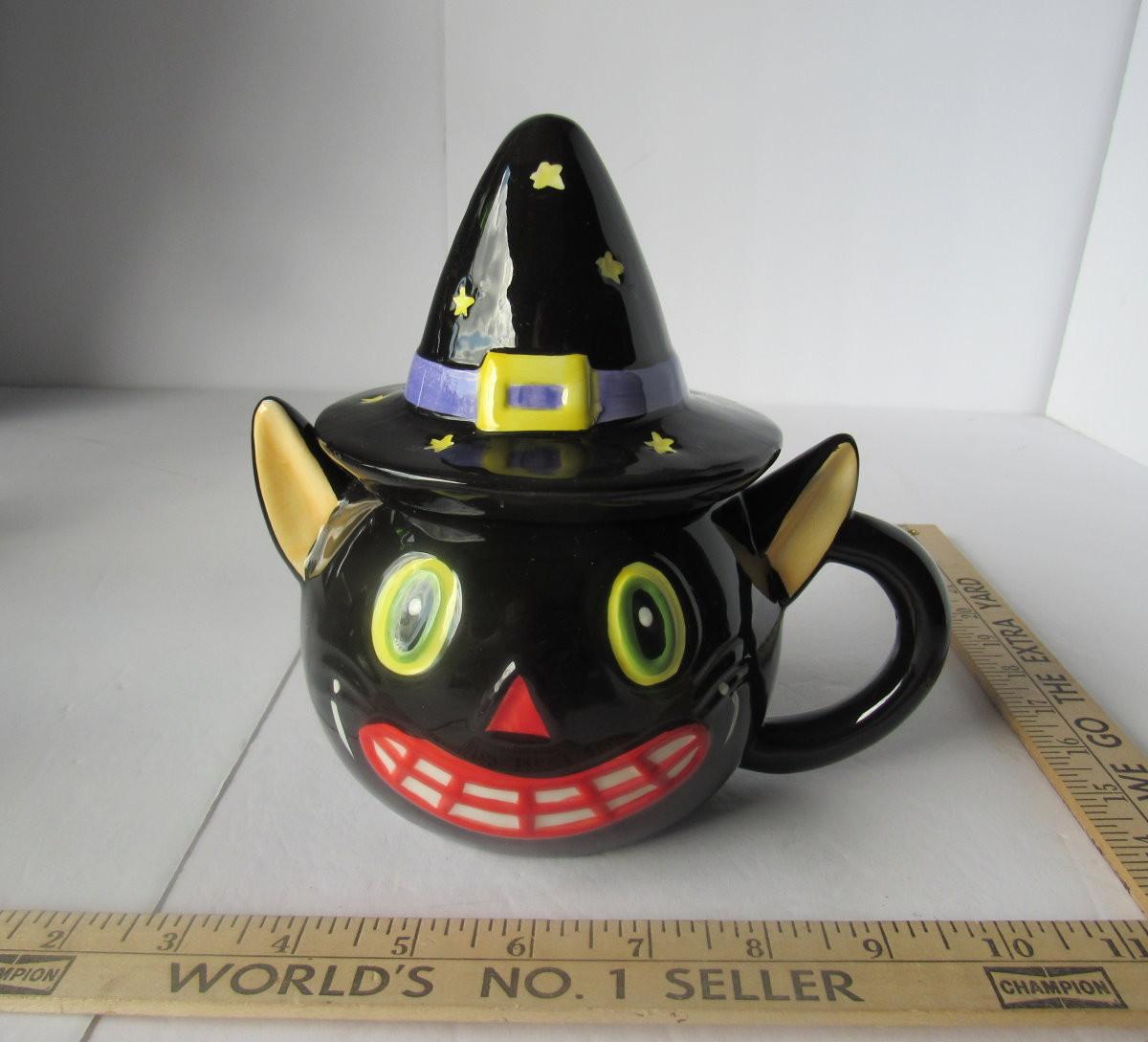 Lot 127:  Adorable Cat in Witch Hat Covered Mug
