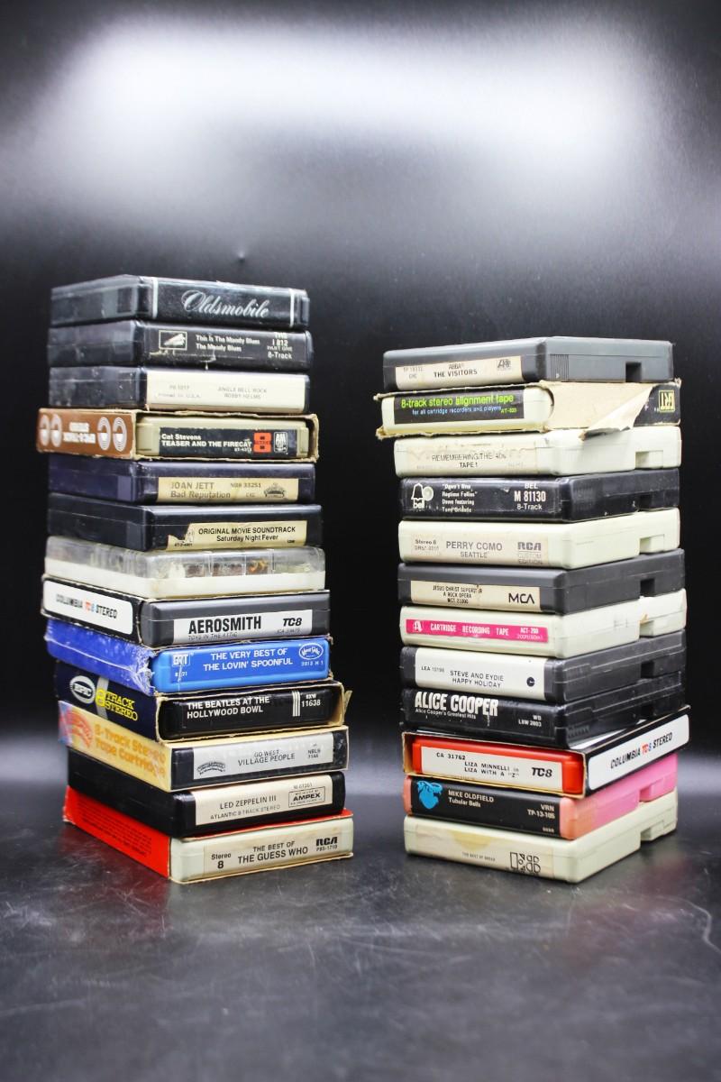 Lot of Vintage Retro 8 Tracks Joan Jett, Aerosmith, The Beatles, Led Zeppelin, ABBA & More, there is some vintage wear on some 8 tracks, but is in fair condition. Has not been tested. The lot has a total of 25 cassettes, check pictures for more details.