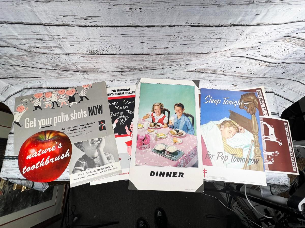 Lot of Vintage Retro Health and Hygiene Teacher Classroom Educational Posters National Tuberculosis Association National Dairy Council & More