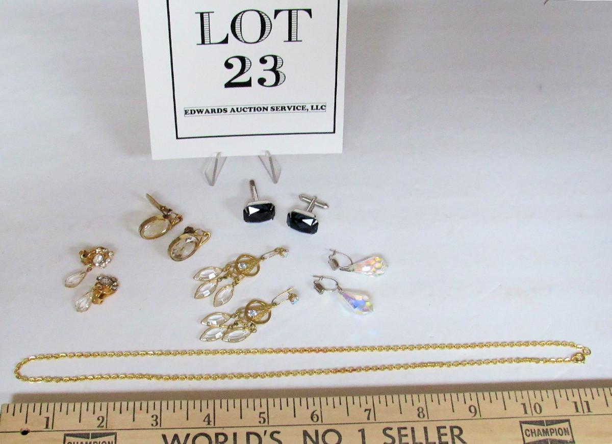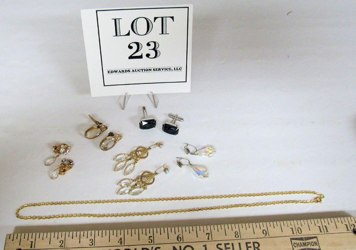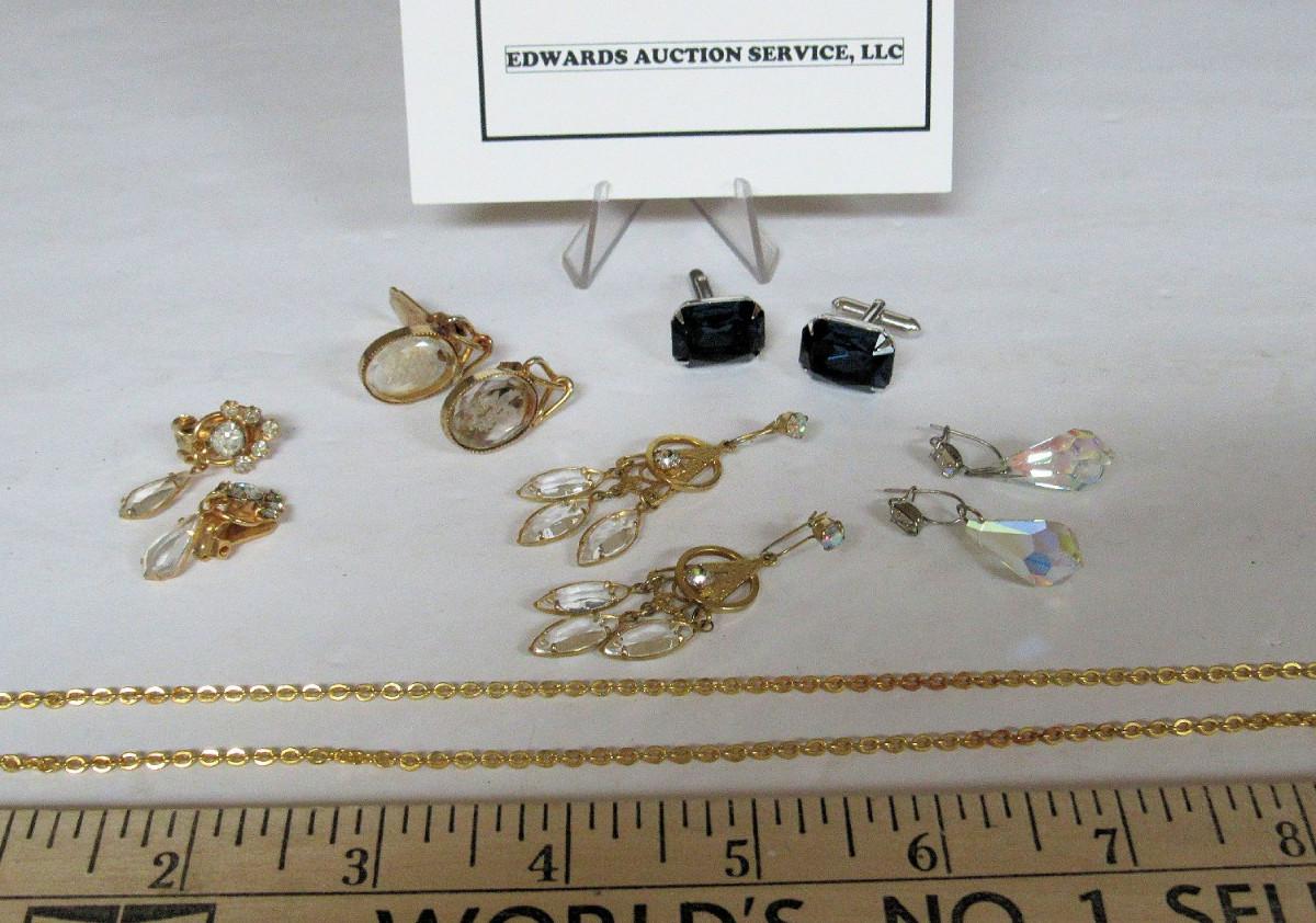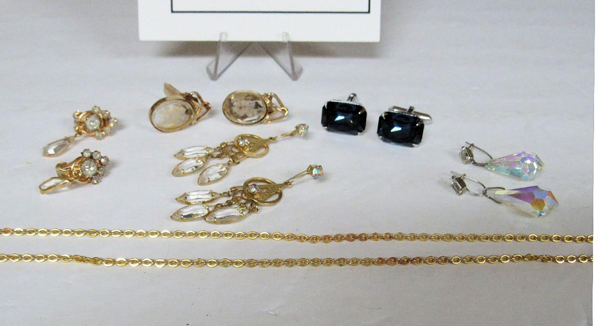 Lot of Vintage Rhinestone Earrings and Pair Blue Rhinestone Cufflinks