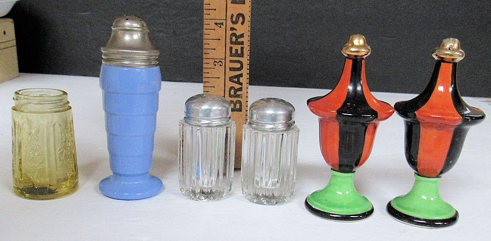 Amber Sharon shaker doesn't have cover. Queen Mary set is good, Moderntone is good. The Art Deco ones are good but have some hard salt inside and no corks. Shipping is available at shipping cost plus $5.00 handling fee on one box, $10.00 handling fee on two boxes, $15.00 handling fee on 3 boxes. Helps cover shipping materials and labor cost.