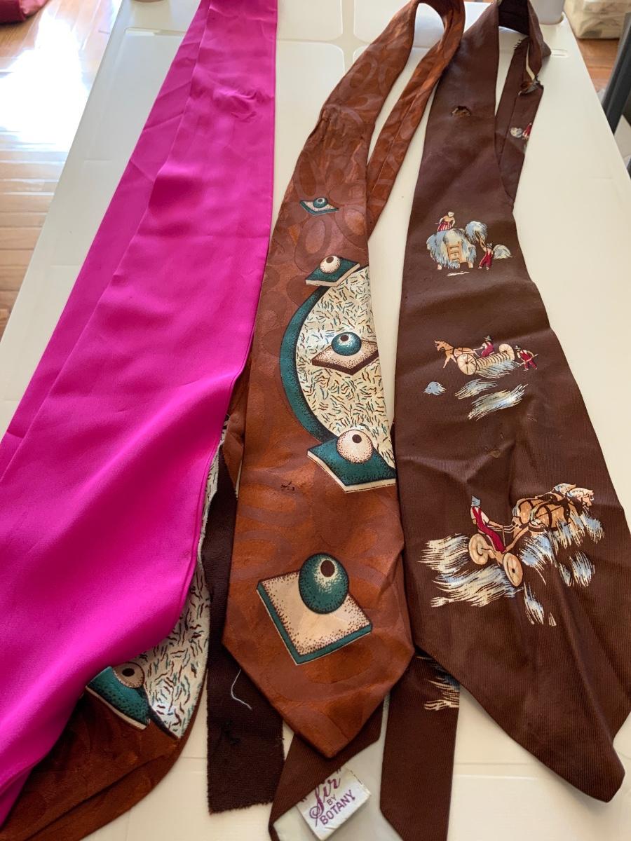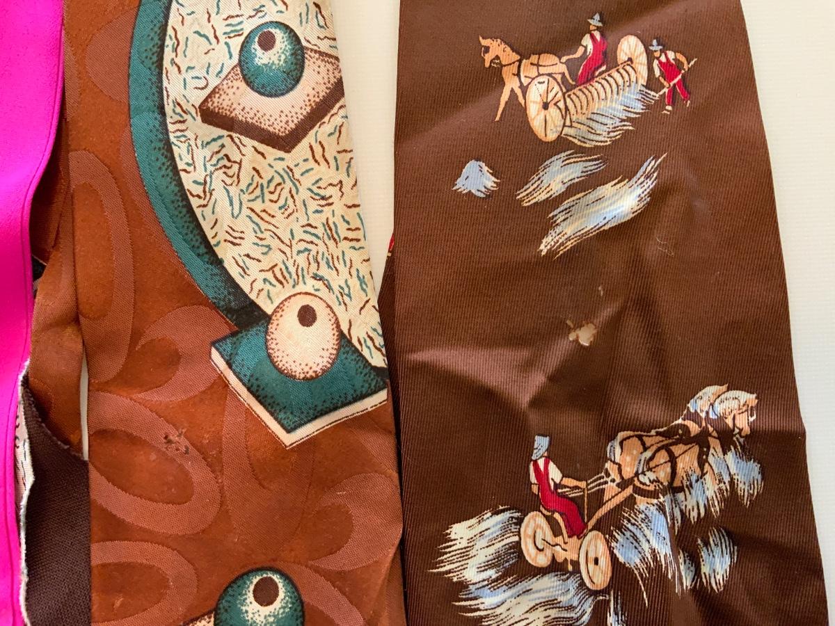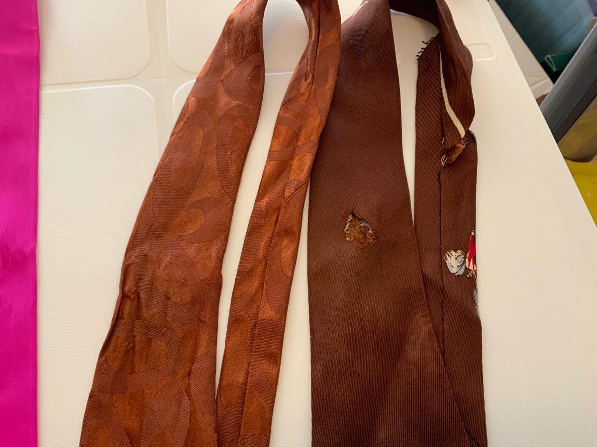 Lot of Vintage silk ties with flaws. Please note that the brown ties have holes and are coming apart.
