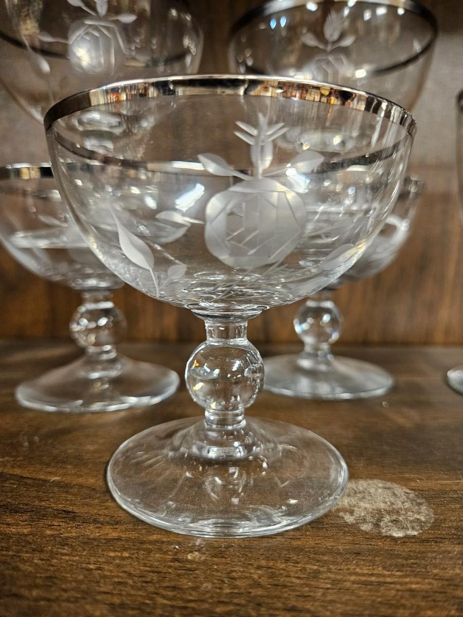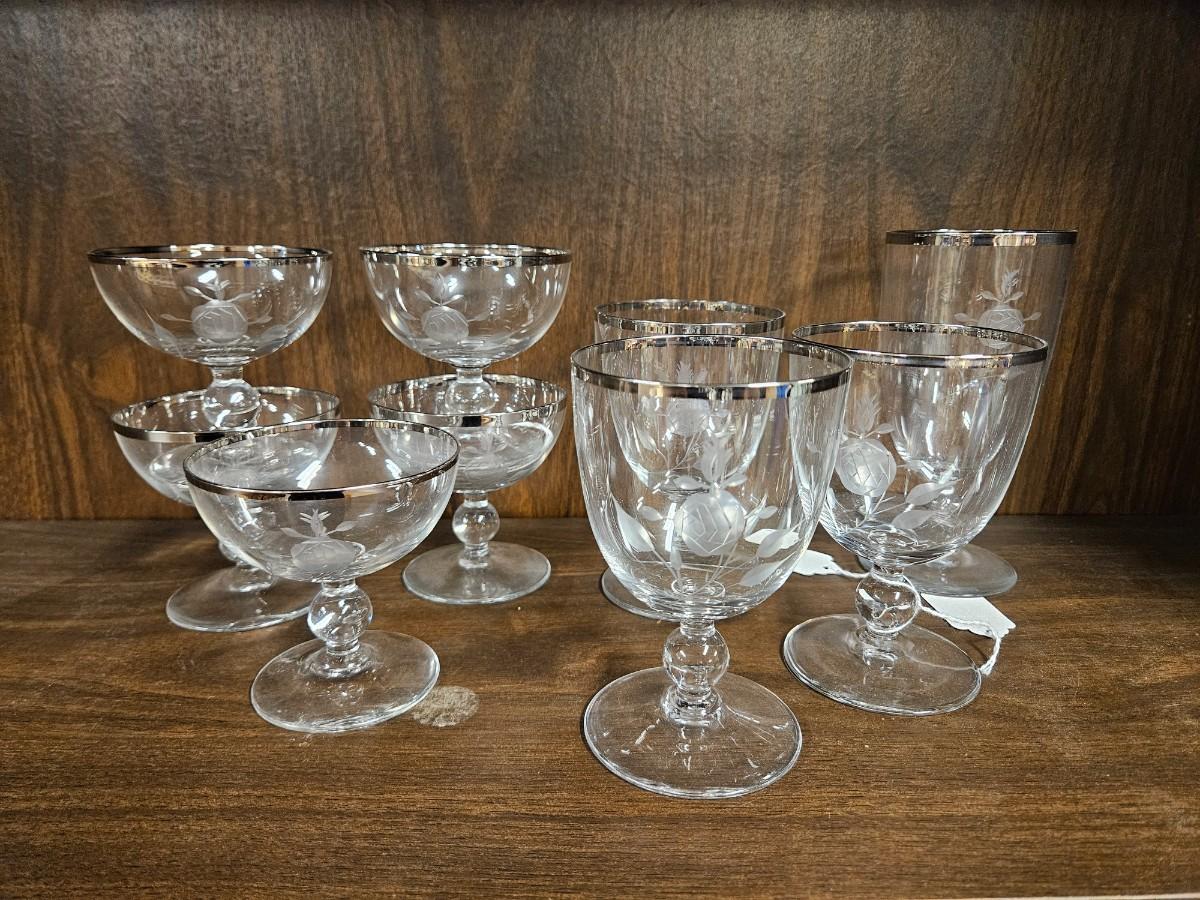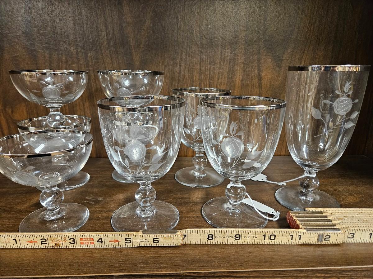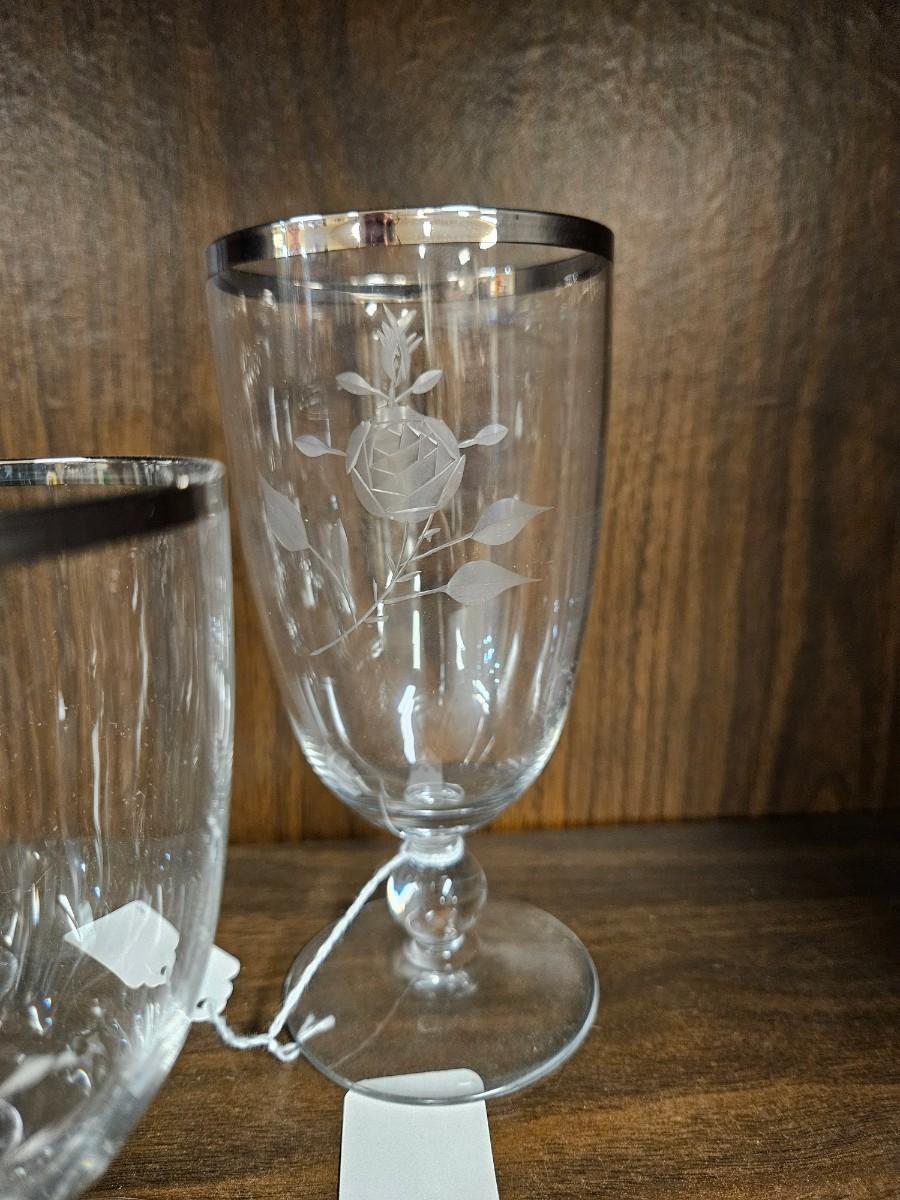 Lot of Vintage Silvertone Etched Rose Drinkware