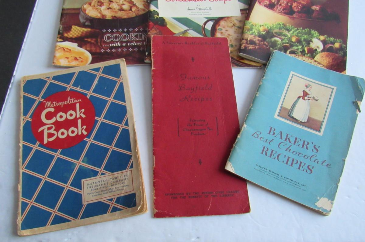 Lot of Vintage Small Cook Books, Famous Bayfield Recipies, Baker's Chocolate 1932