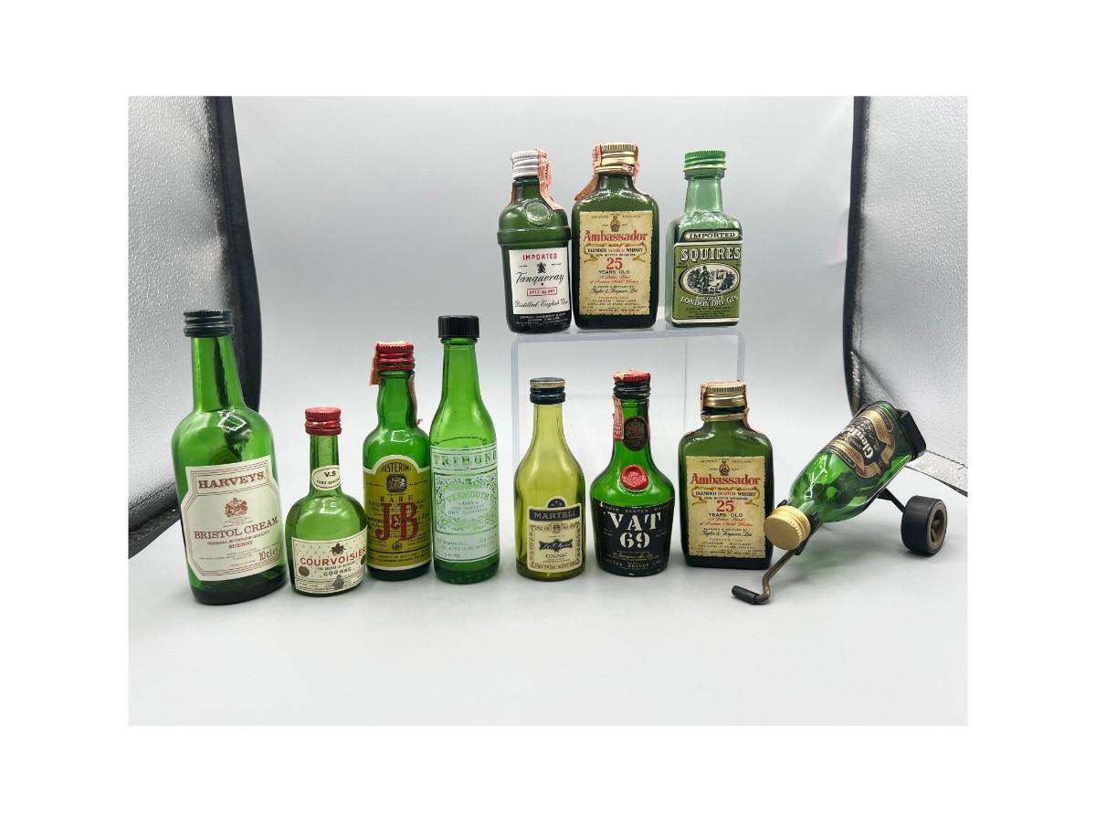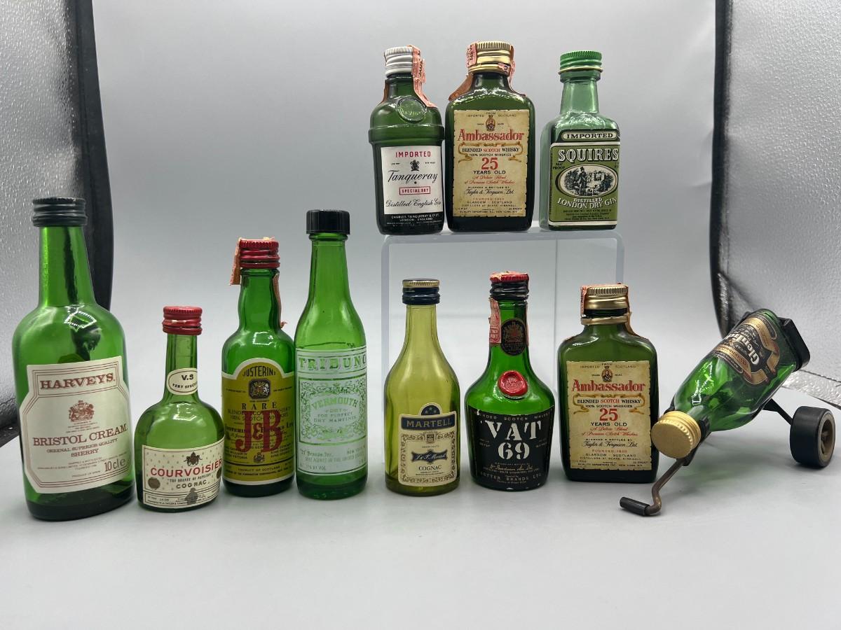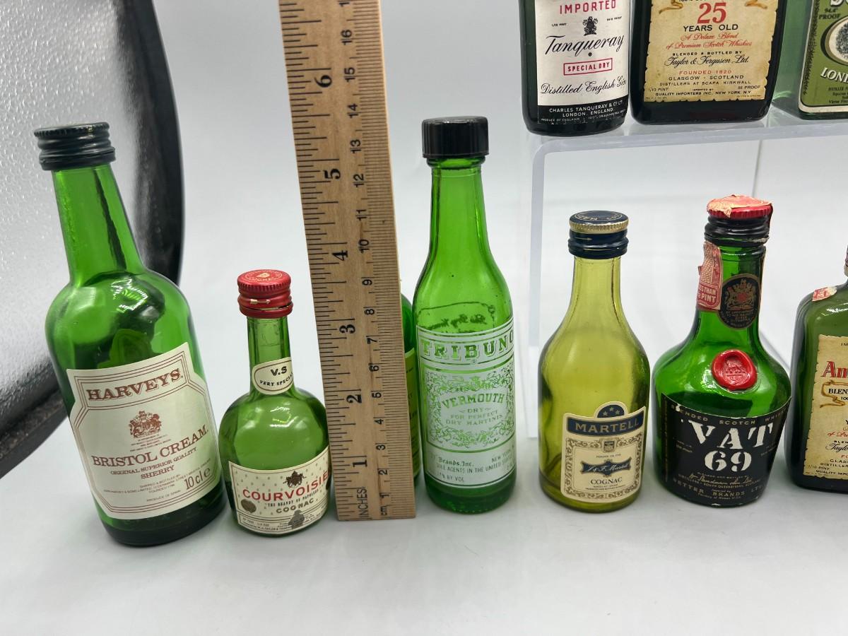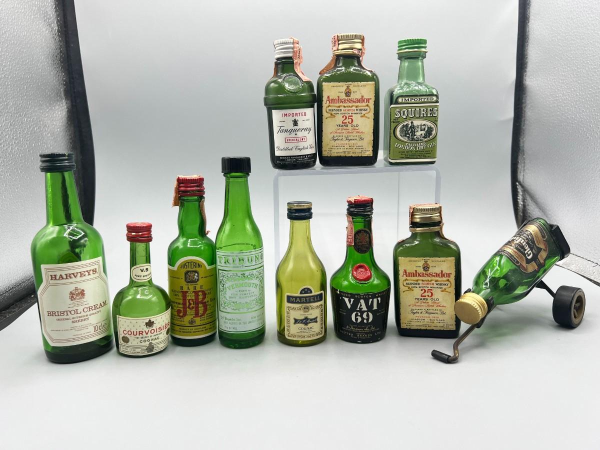Lot of Vintage Small Green Glass Collectible Liquor Bottles
