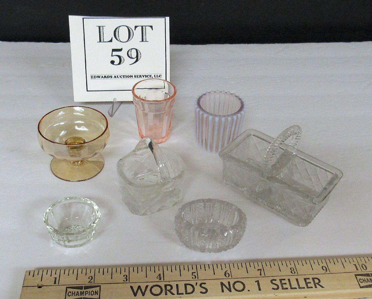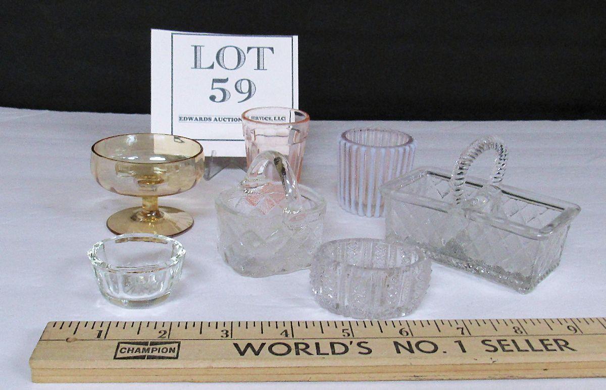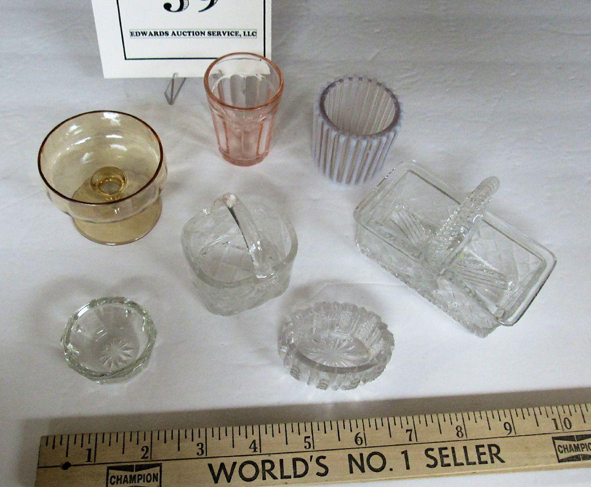 Lot of Vintage Smalls: Salt dips, Toothpick Holder, Depression Glass Shot Glass