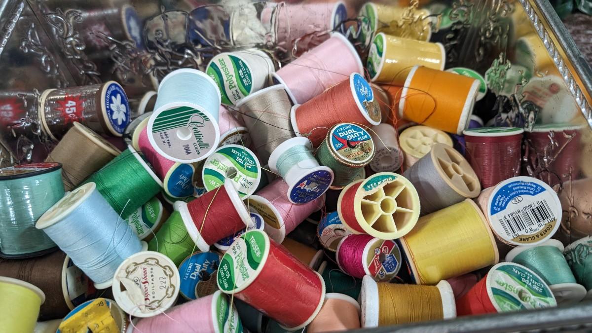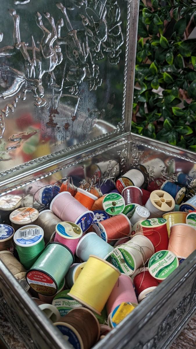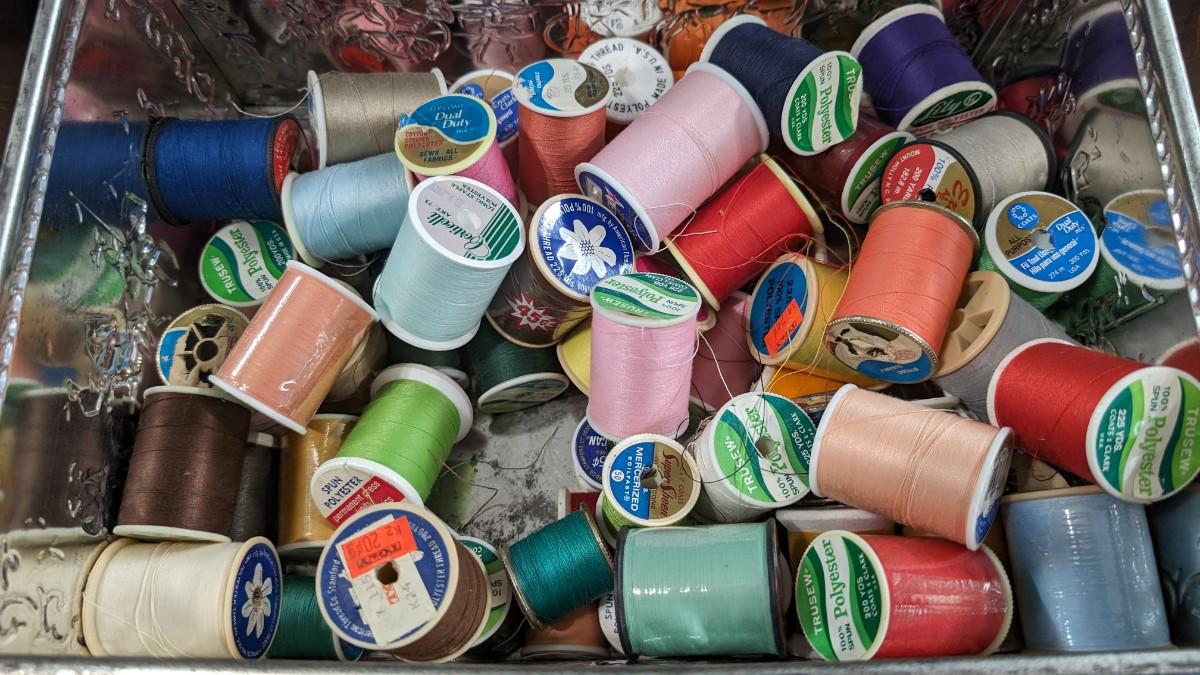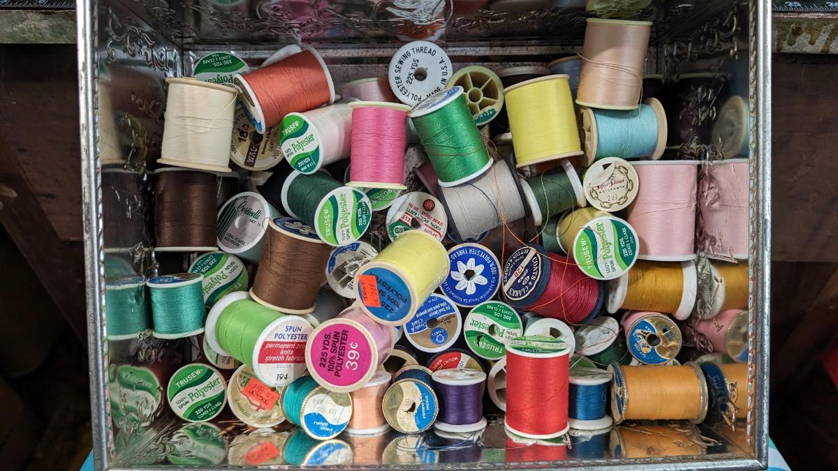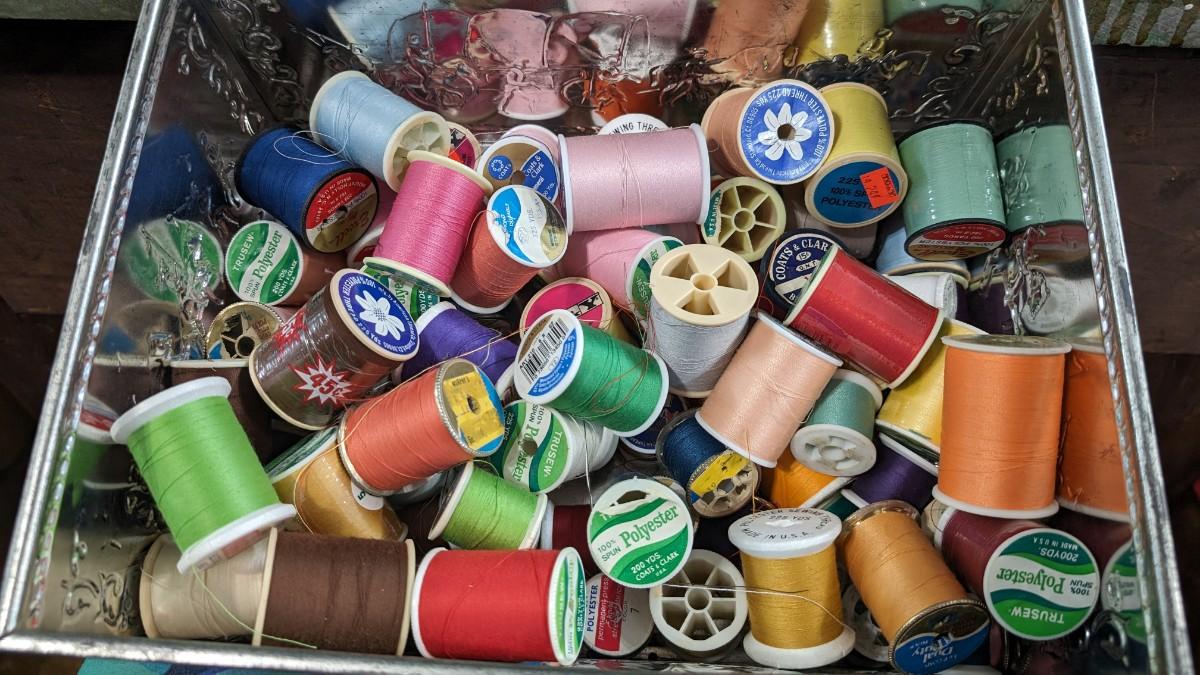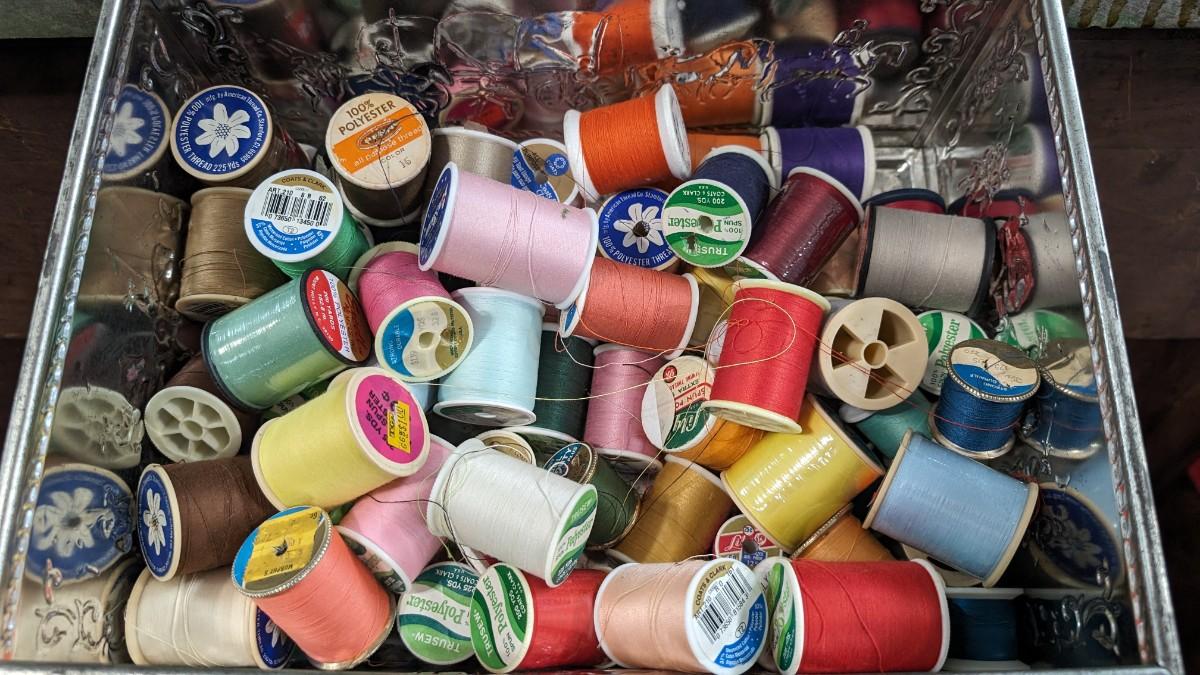 This is a Lot of Vintage Spools of Thread 50+ in Large Tin
