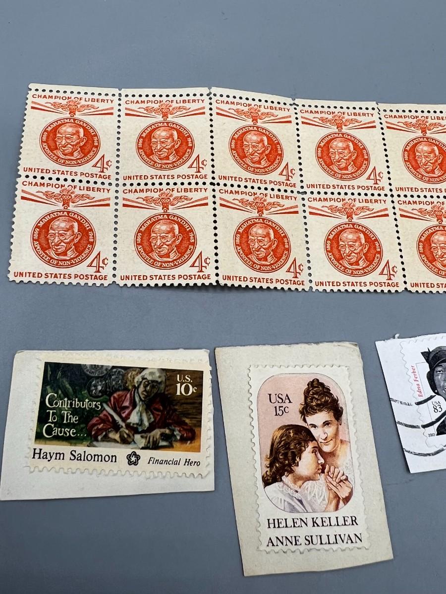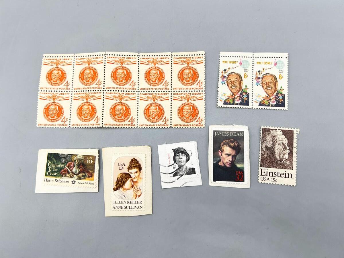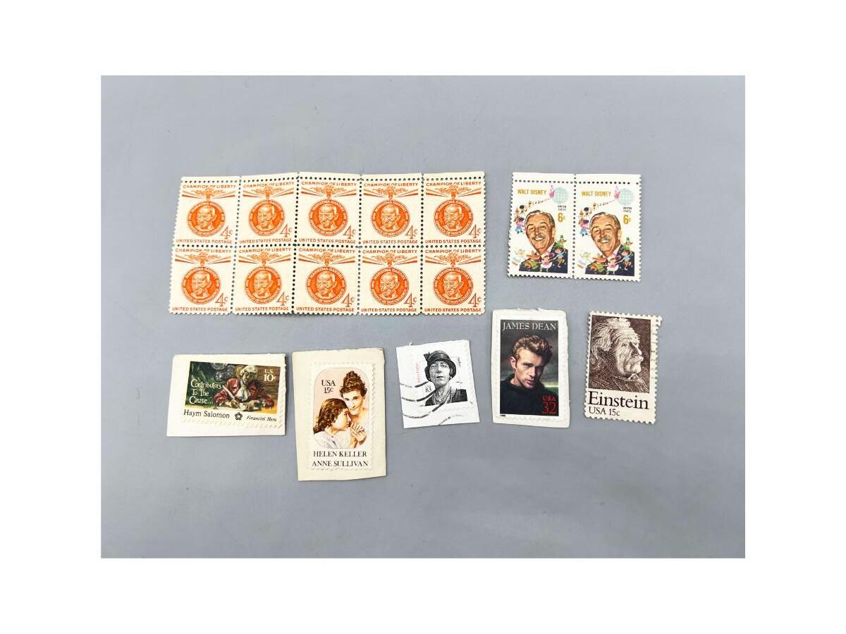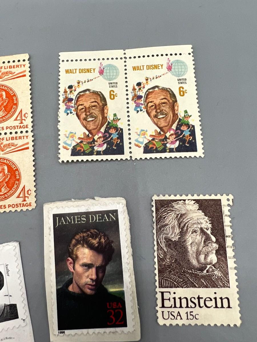 Lot of Vintage Stamps of Important Figures in History Walt Disney, Einstein, Gandhi, James Dean & More