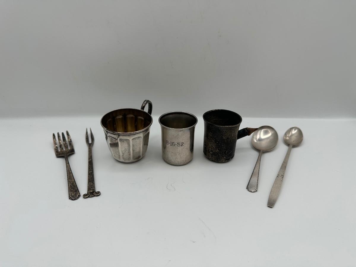 Lot of Vintage Sterling Silver Items – Baby Cups, Small Forks & Spoons (7pcs)