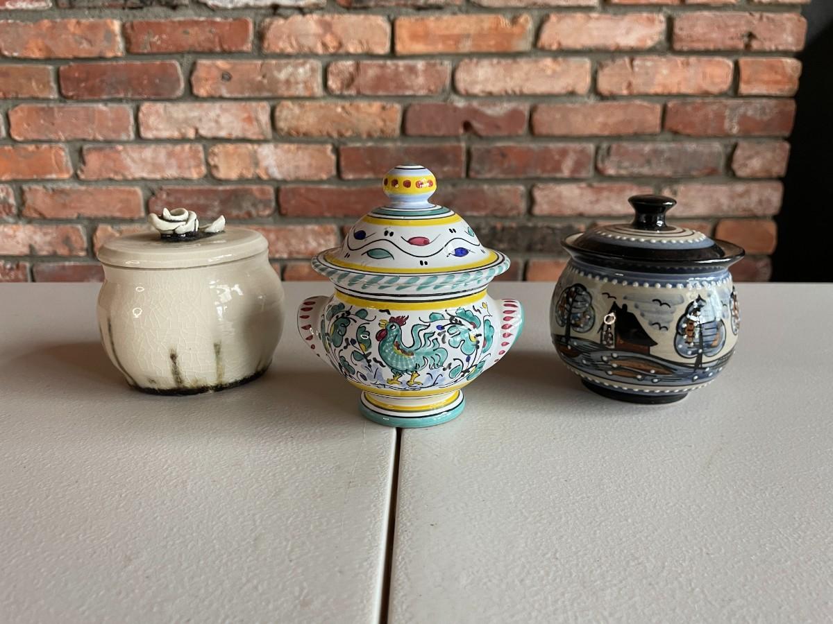 Vintage Deruta bowl. Hand Painted antique bowl and Crackle glass bowl. All approx. 4w x 3 1/2h