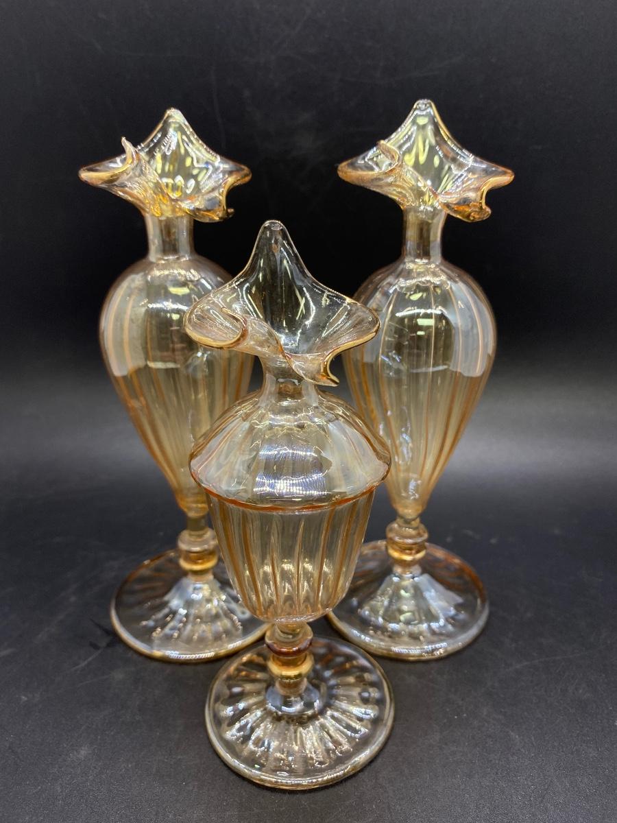 Lot of Vintage Thin Glass Art Nouveau Perfume Scent Vases Storage Containers