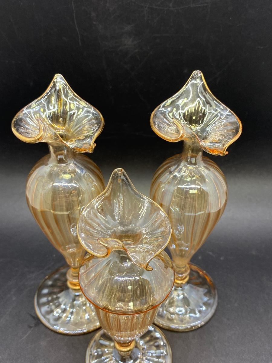 Lot of Vintage Thin Glass Art Nouveau Perfume Scent Vases Storage Containers, there is no significant damage to the glass and is in good vintage condition. Check pictures for more details and or sizing.