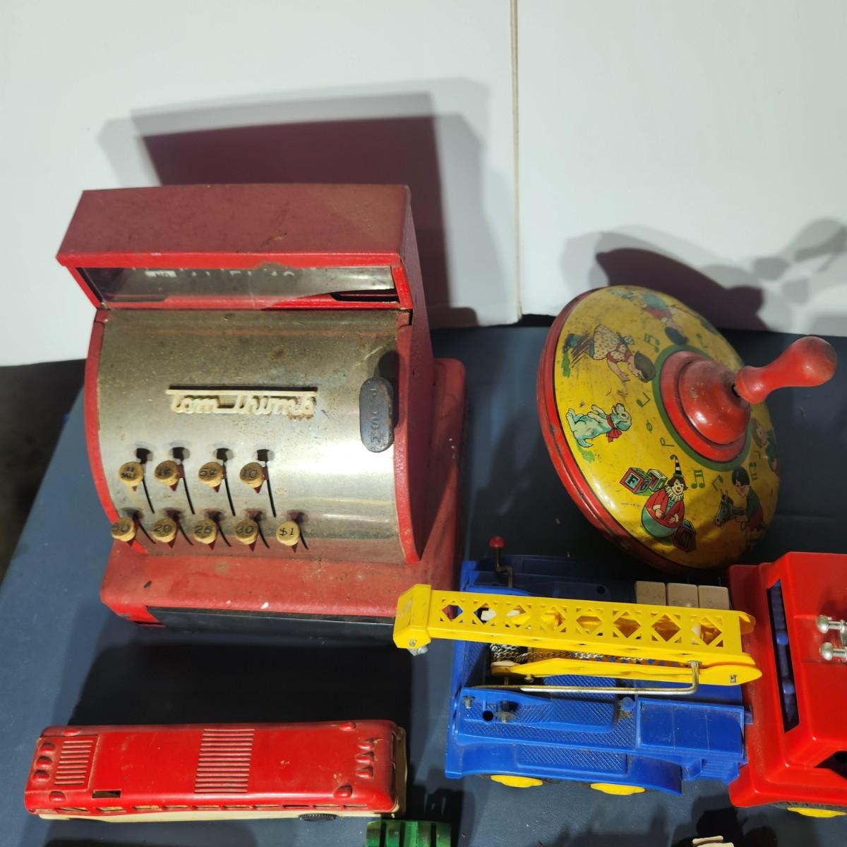 Lot of Vintage Toys Tom Thumb Toy Cash Register , Tootsietoy truck