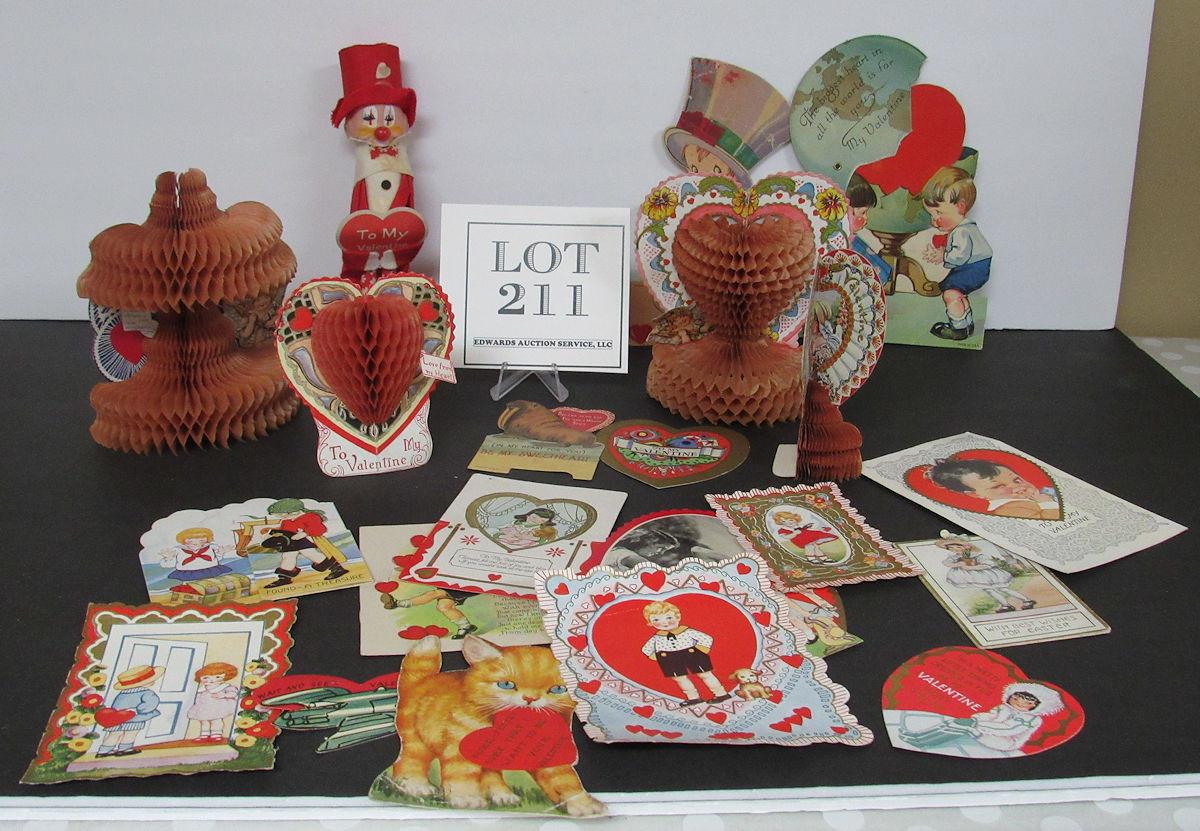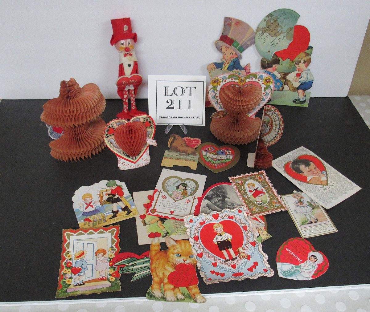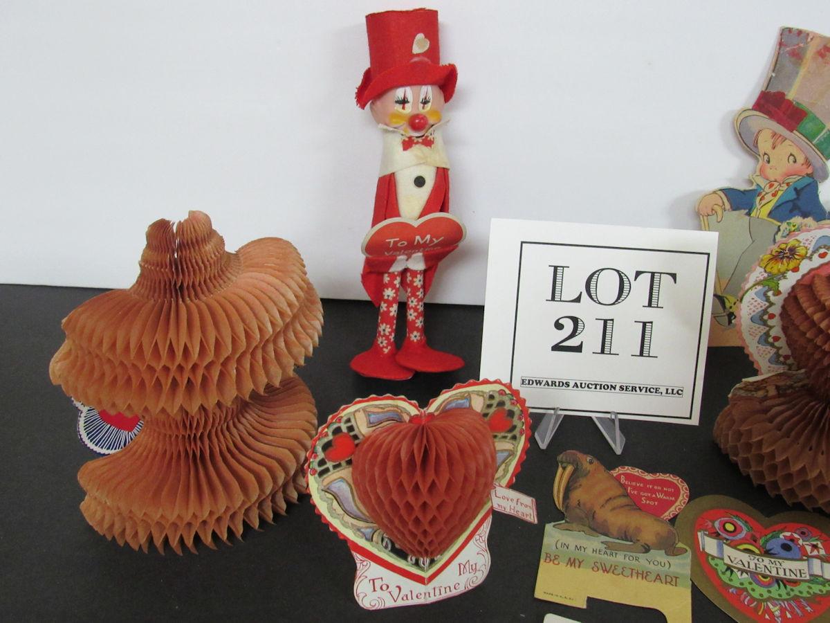 Lot of Vintage Valentines, Valentine Clown Doll, Post Card