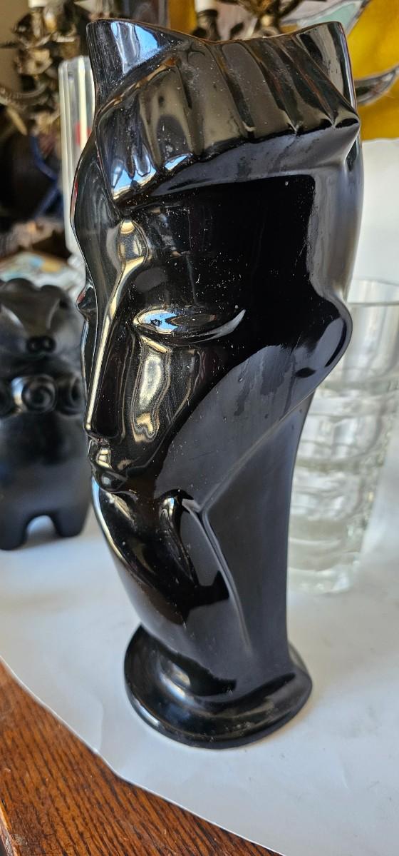 Item 3: Black Ceramic Head Vase 10" tall Lindsey B Balkweill Style Art Deco Style