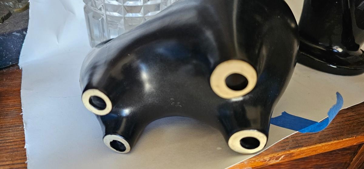 Item 4: MCM Japanese Foo Dog Lion Ceramic Statue Black 7" tall
