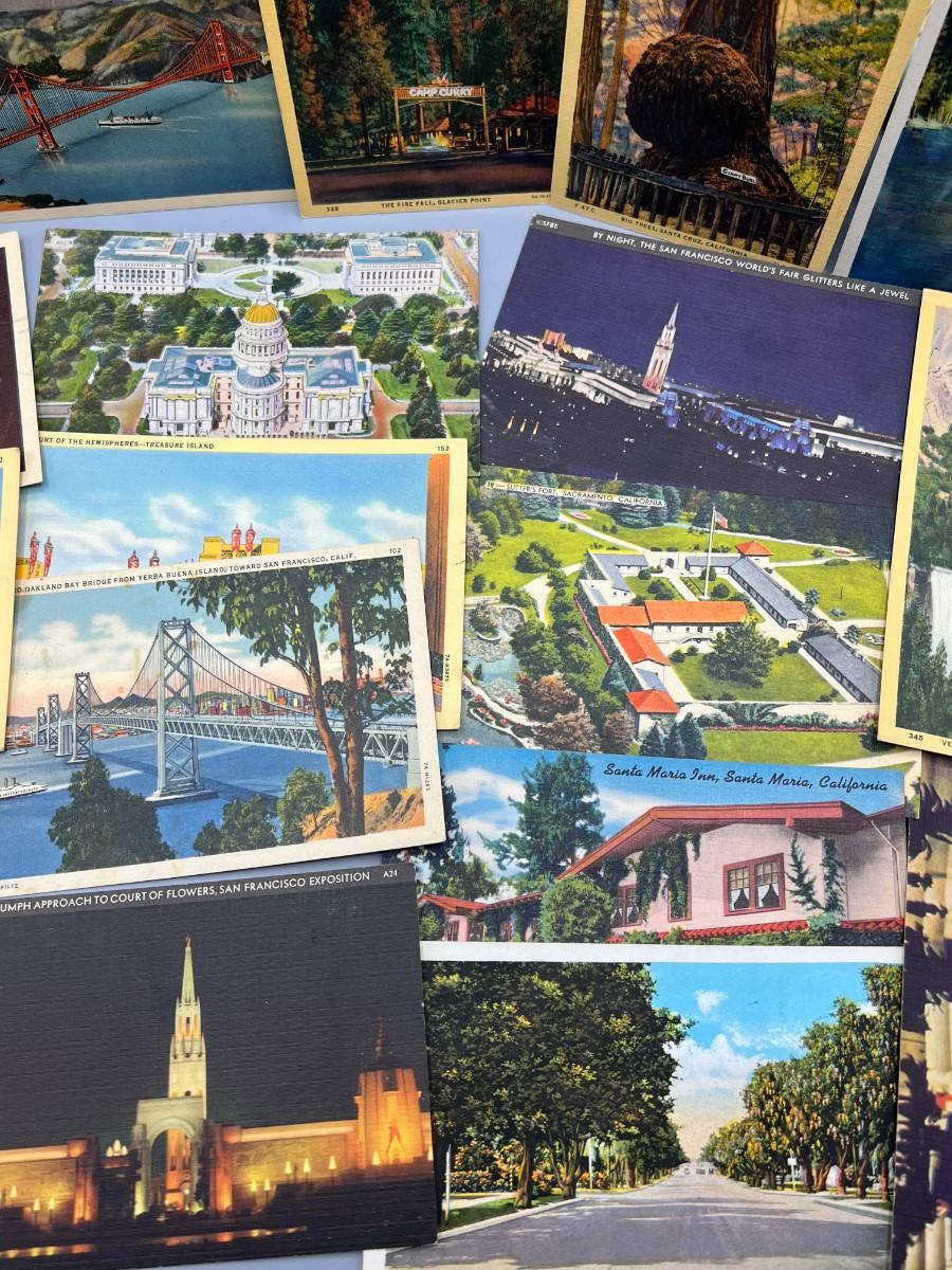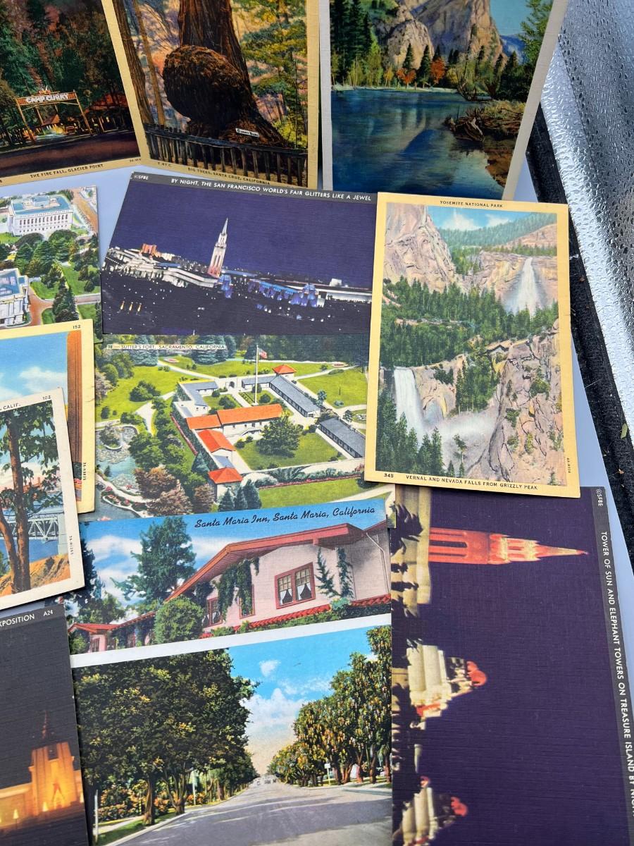 Lot of Vintage Vinyl Travel Postcards of California San Francisco, Sacramento, Yosemite National Park & More