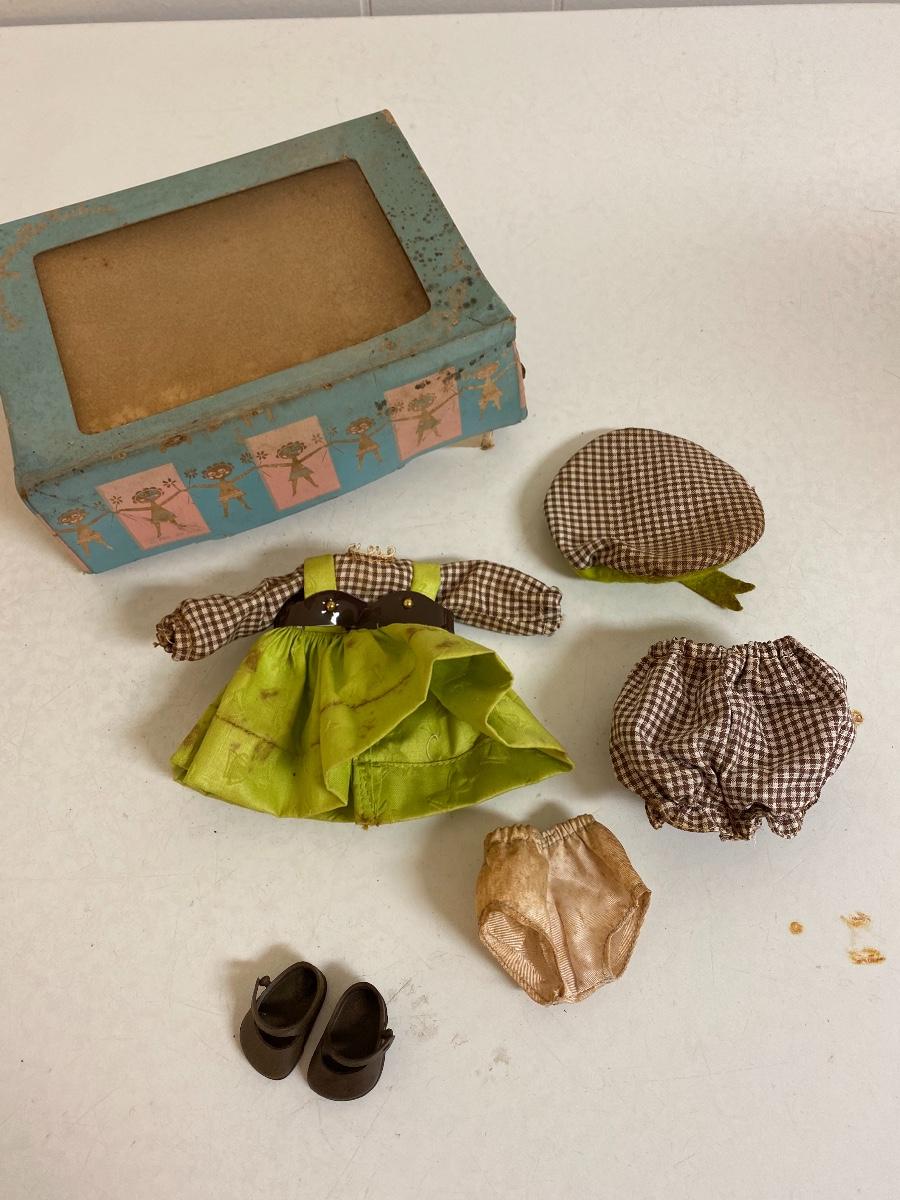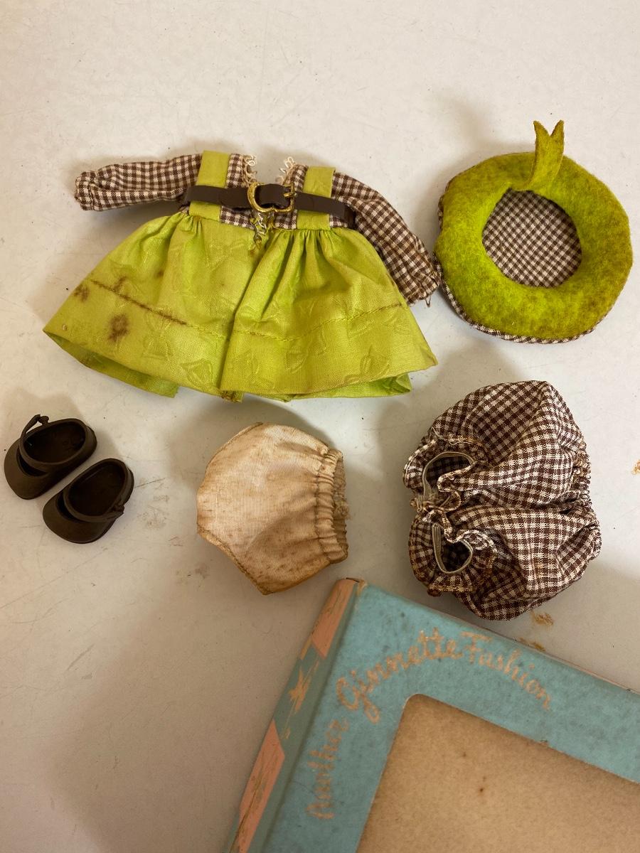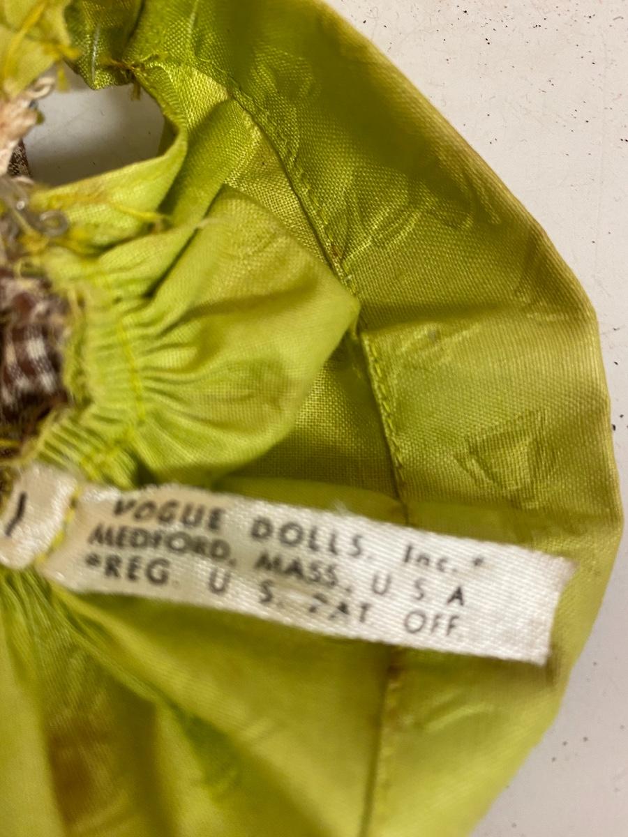 Lot of vintage Vogue doll single OUTFIT, green and brown gingham with shoes, styled by Ginnette Fashion including the box