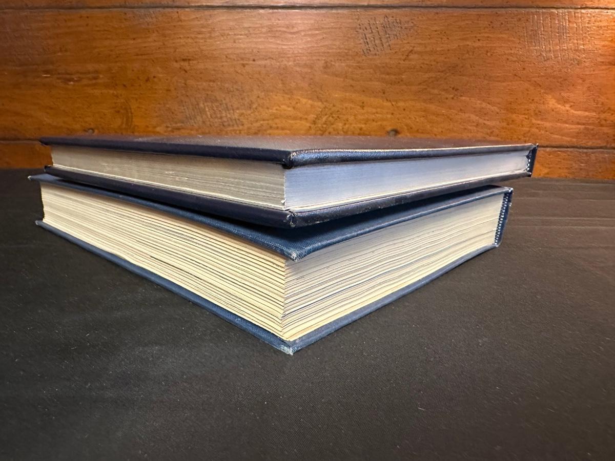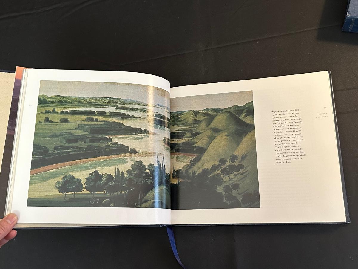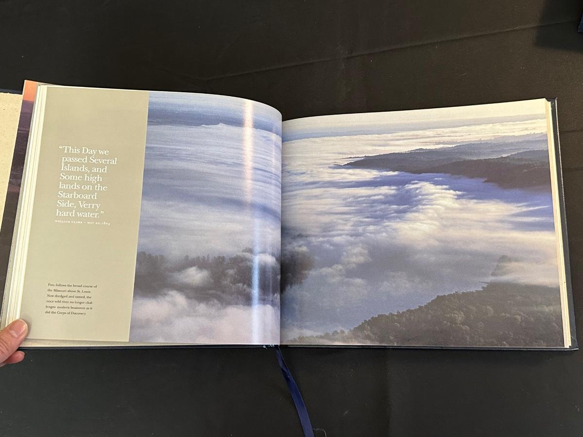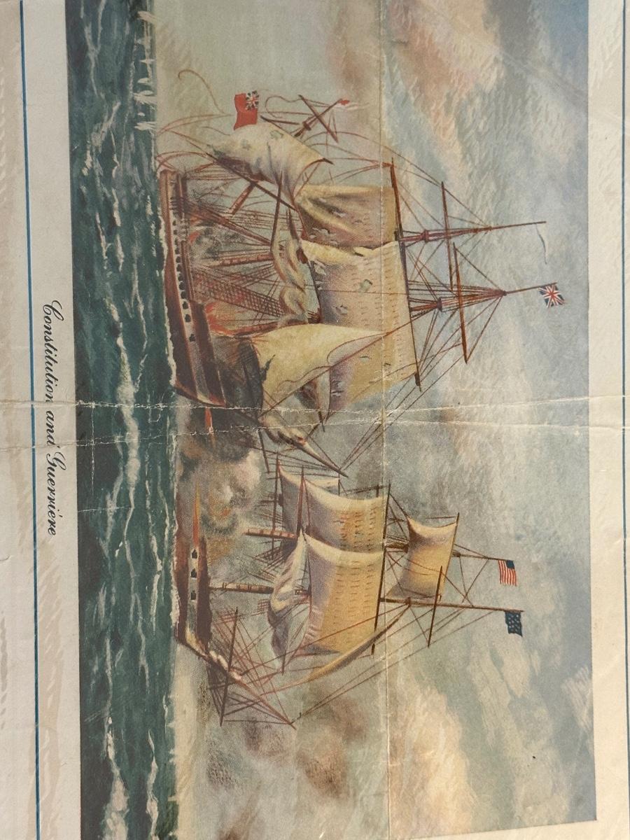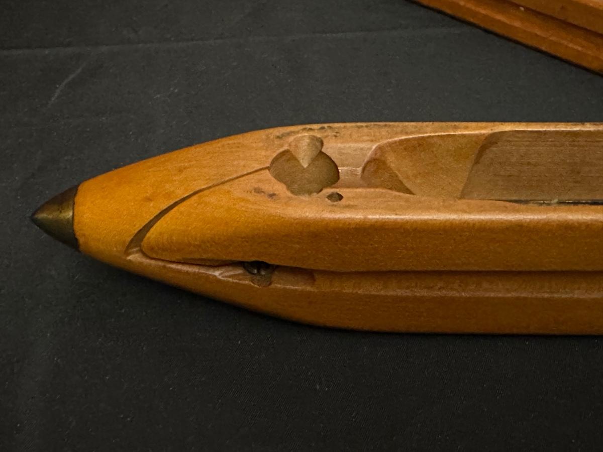Vintage Wooden Loom, Wood Thermometer, The book Lewis & Clark Voyage of Discovery, book Piloting, Seamanship and Small Boat Handling, and a laminated picture of two ships. Thermometers are purely for decor, and do not actively work .