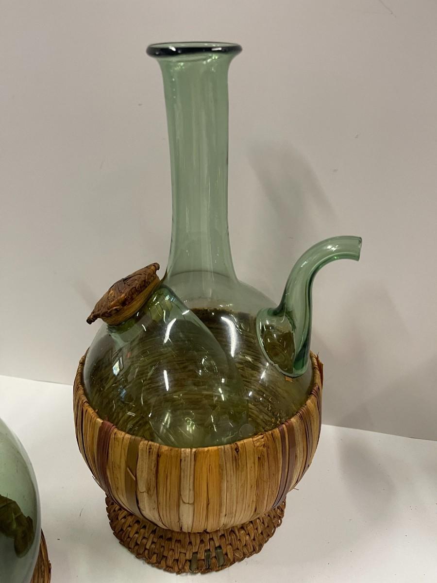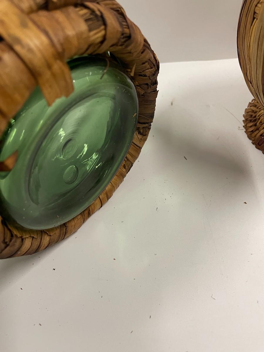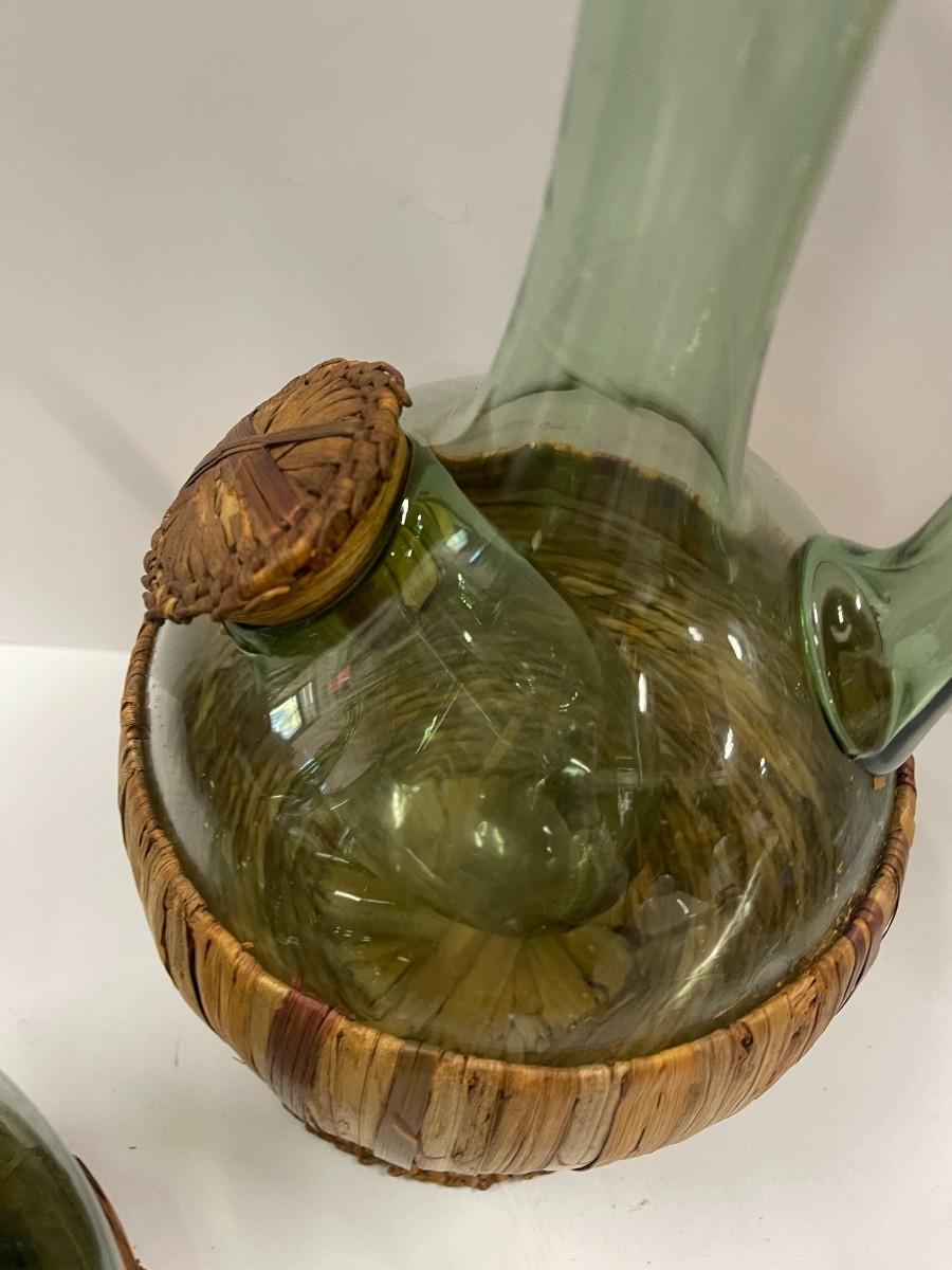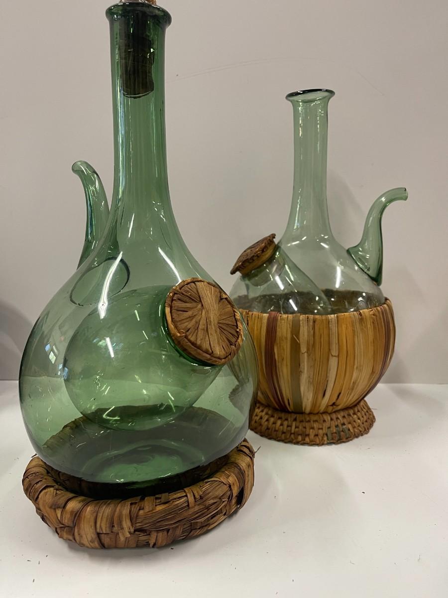 Lot of 2 vintage Italian wine decanters with ice chambers an woven stoppers. Both in great condition. Approx 12 1/2" high.