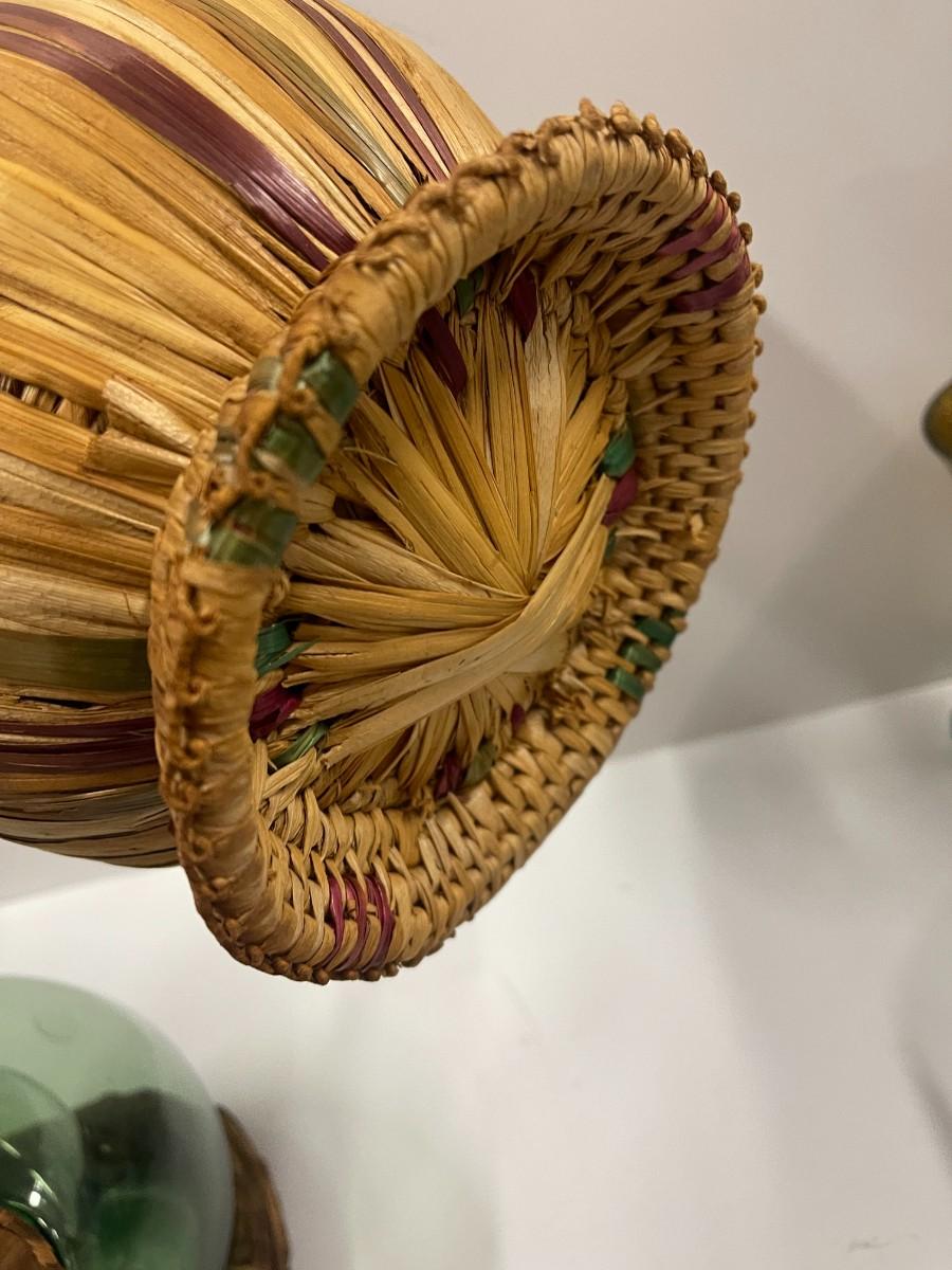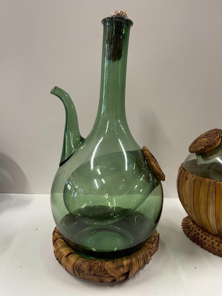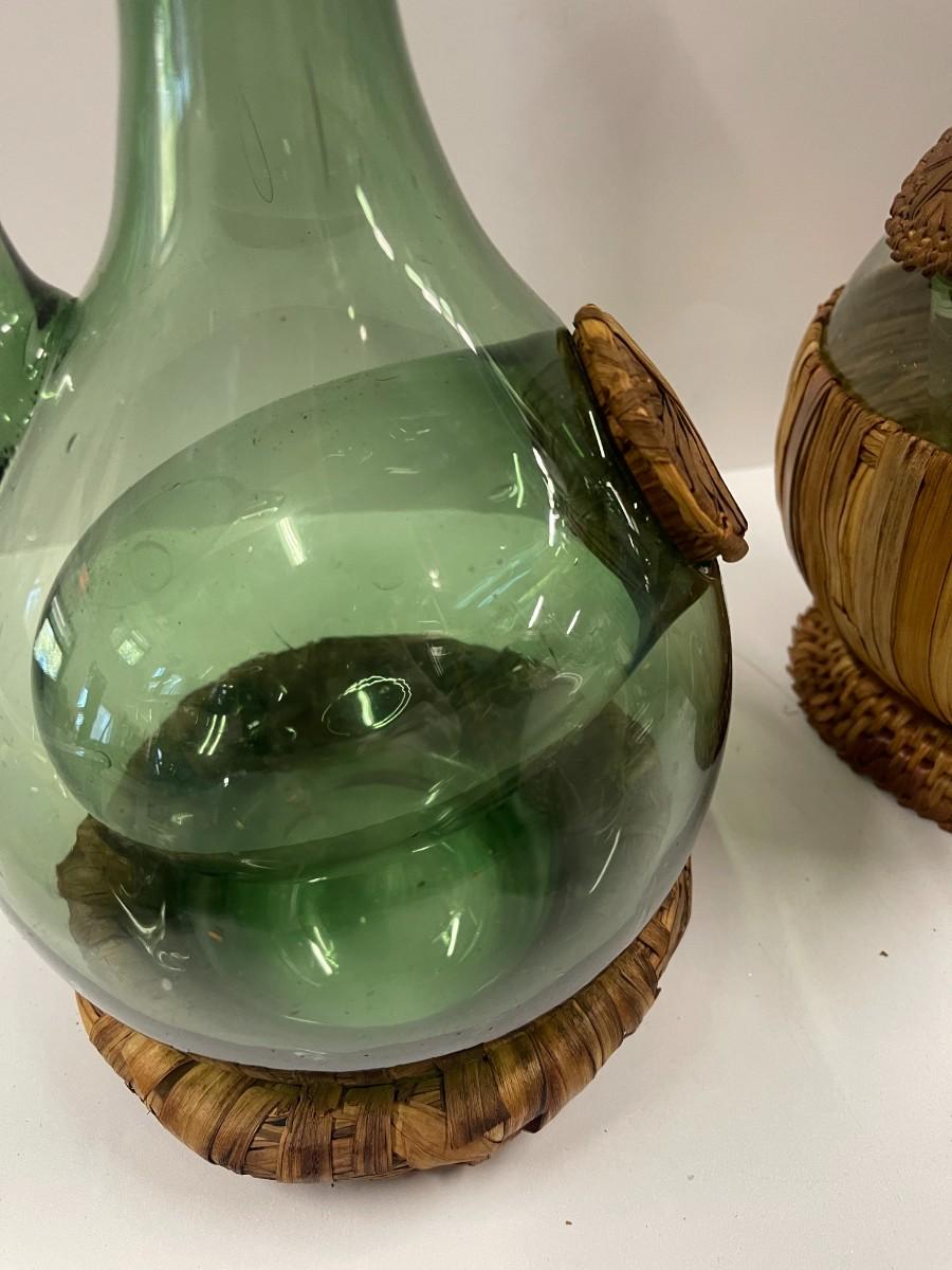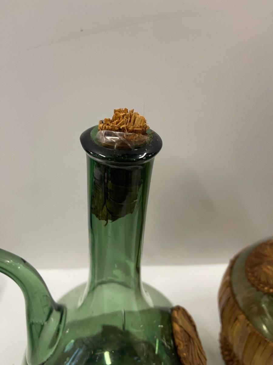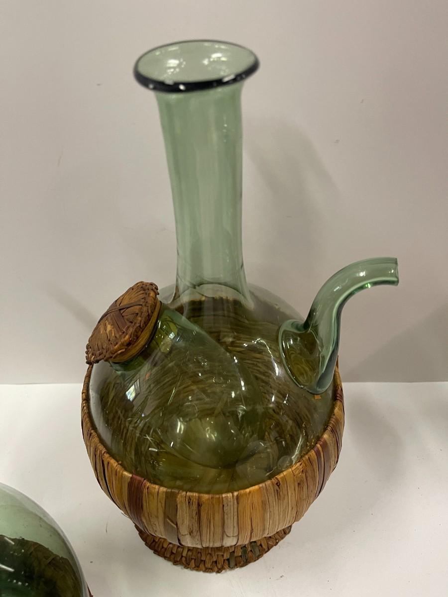 Lot of 2 vintage Italian wine decanters with ice chambers an woven stoppers. Both in great condition. Approx 12 1/2" high.