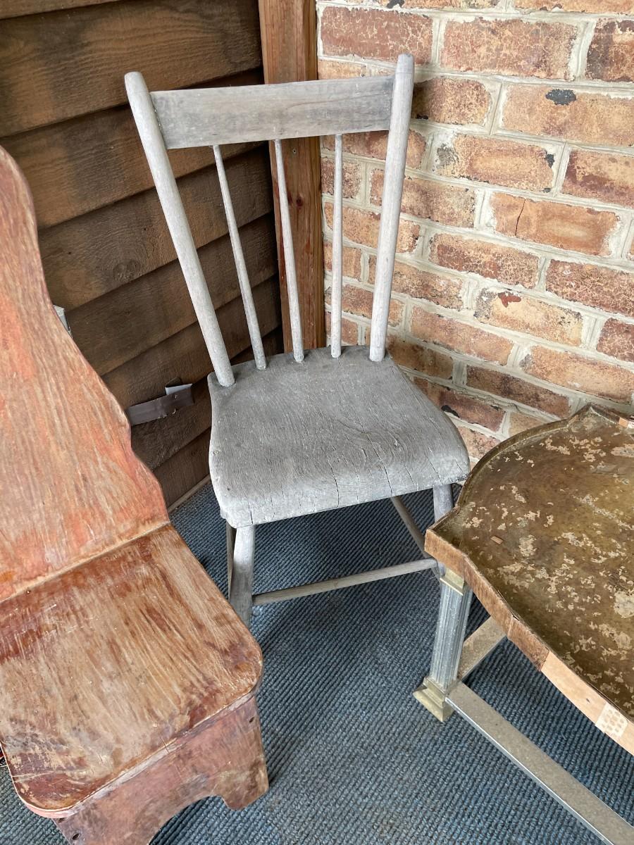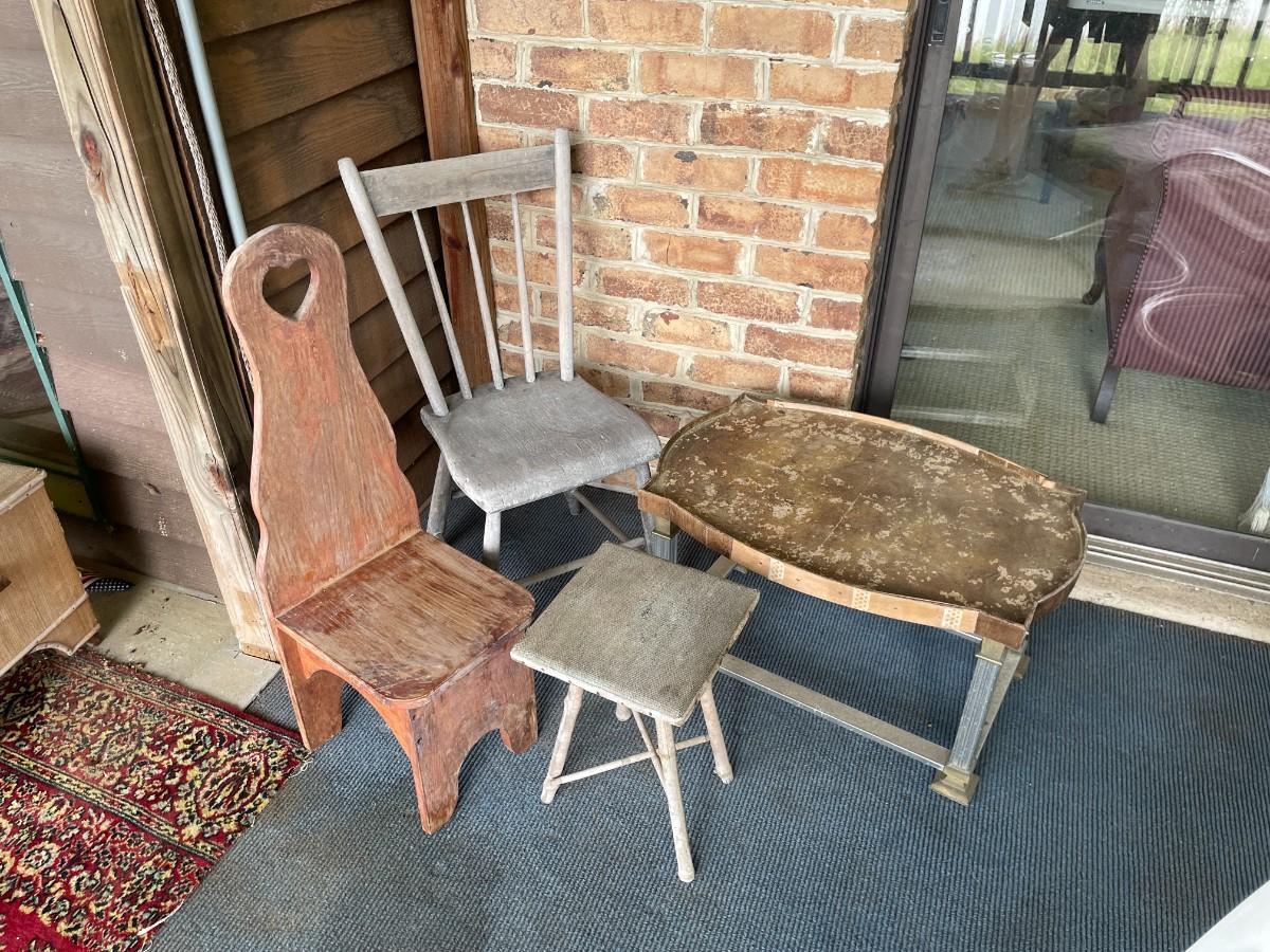 Assortment of wooden chairs and a table. See photo for condition. 27L x 19W x 15 1/2h