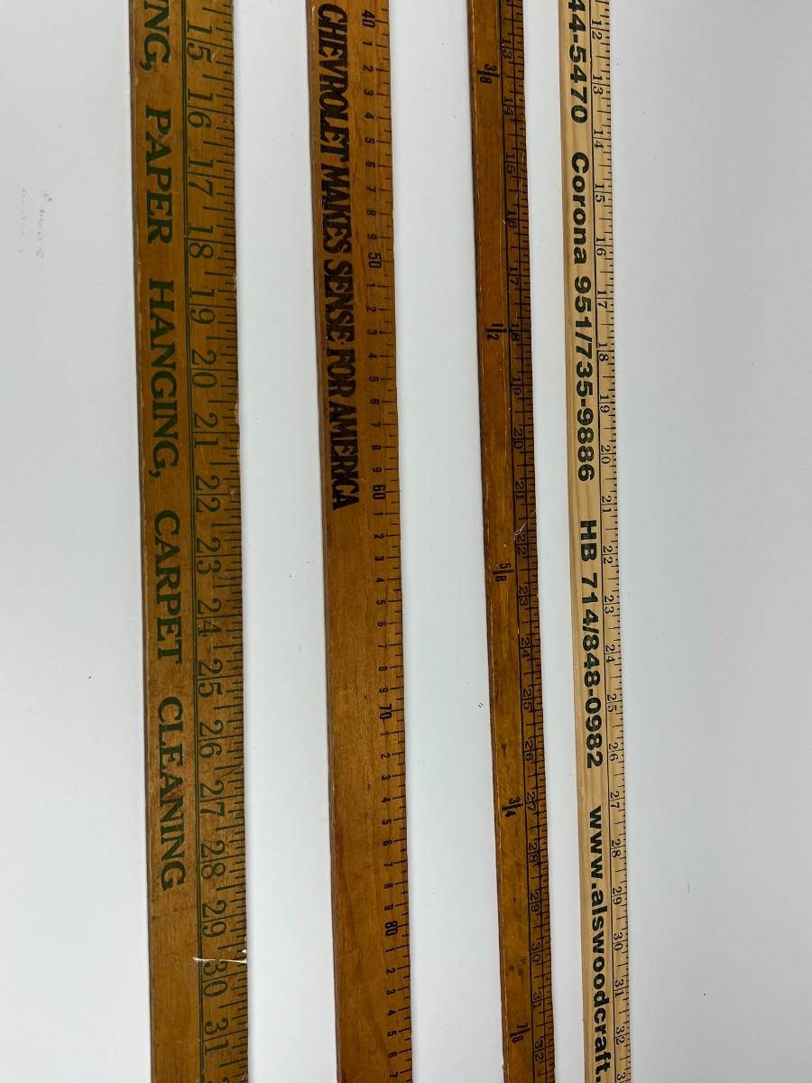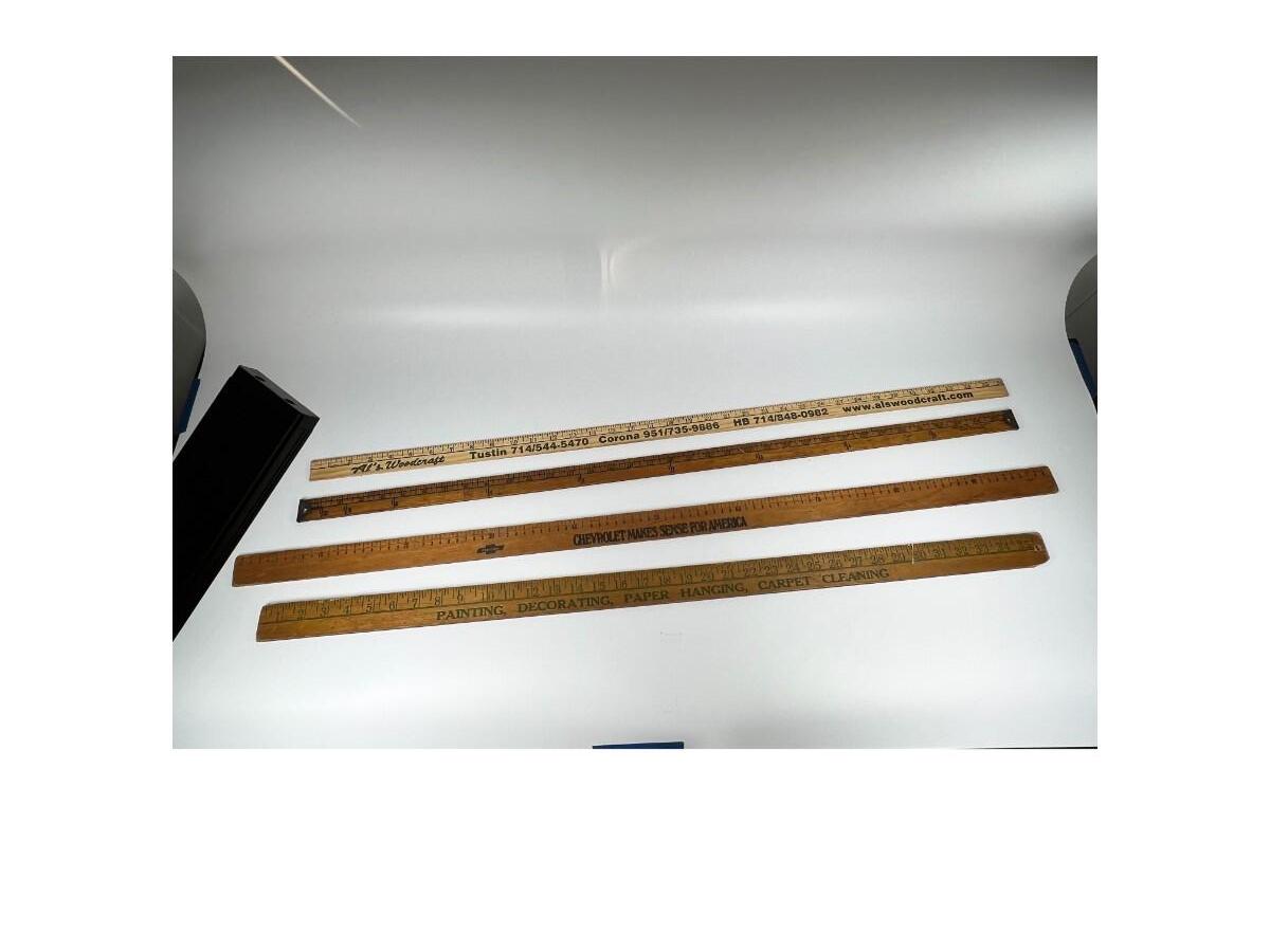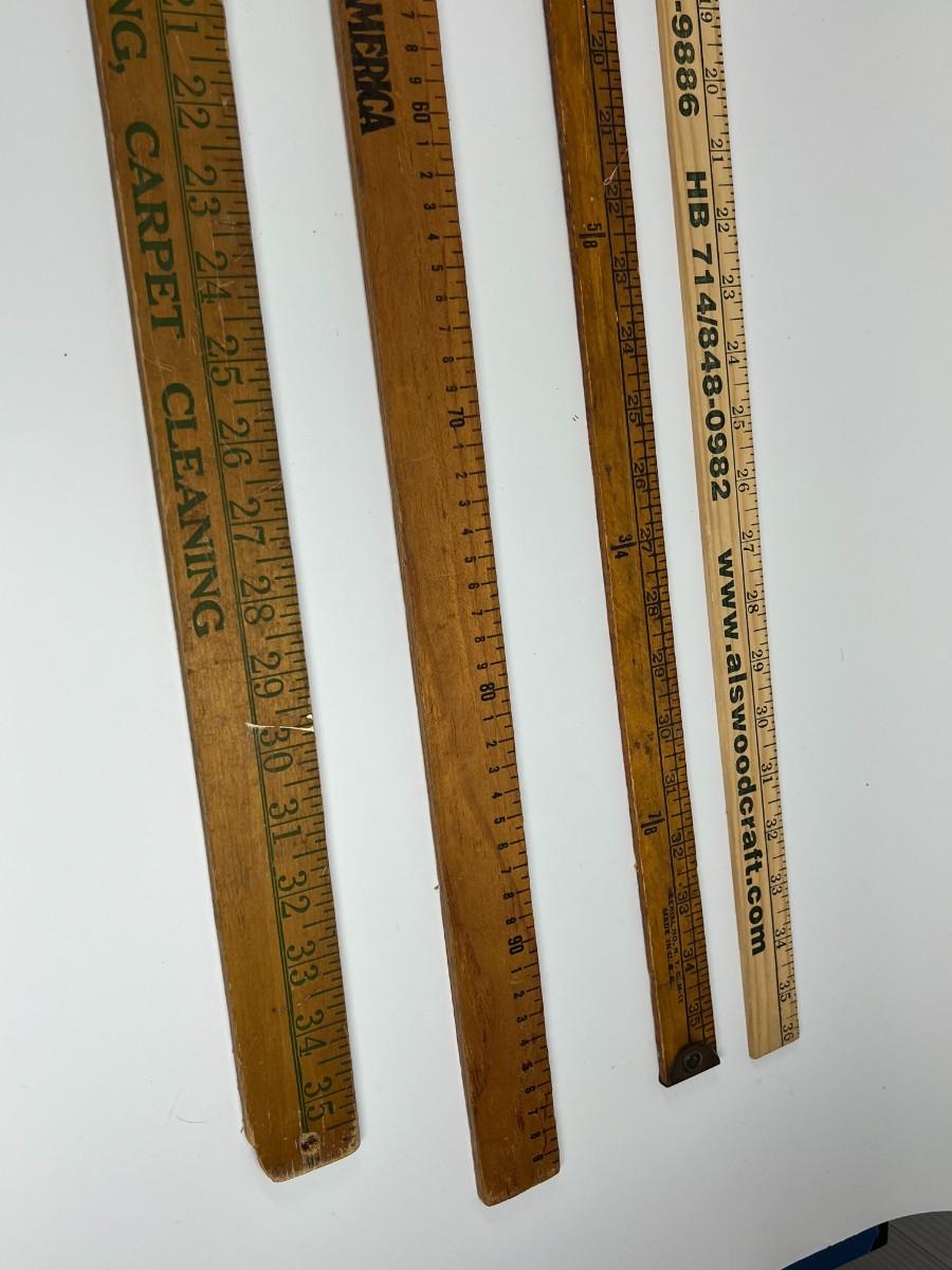 Lot of Vintage Wooden Measuring Yardsticks, there is some cracking to the wood on one of the yardsticks, but there is no signifncant damage and is in overall good useable condition. Check pictures for more details and for sizing.