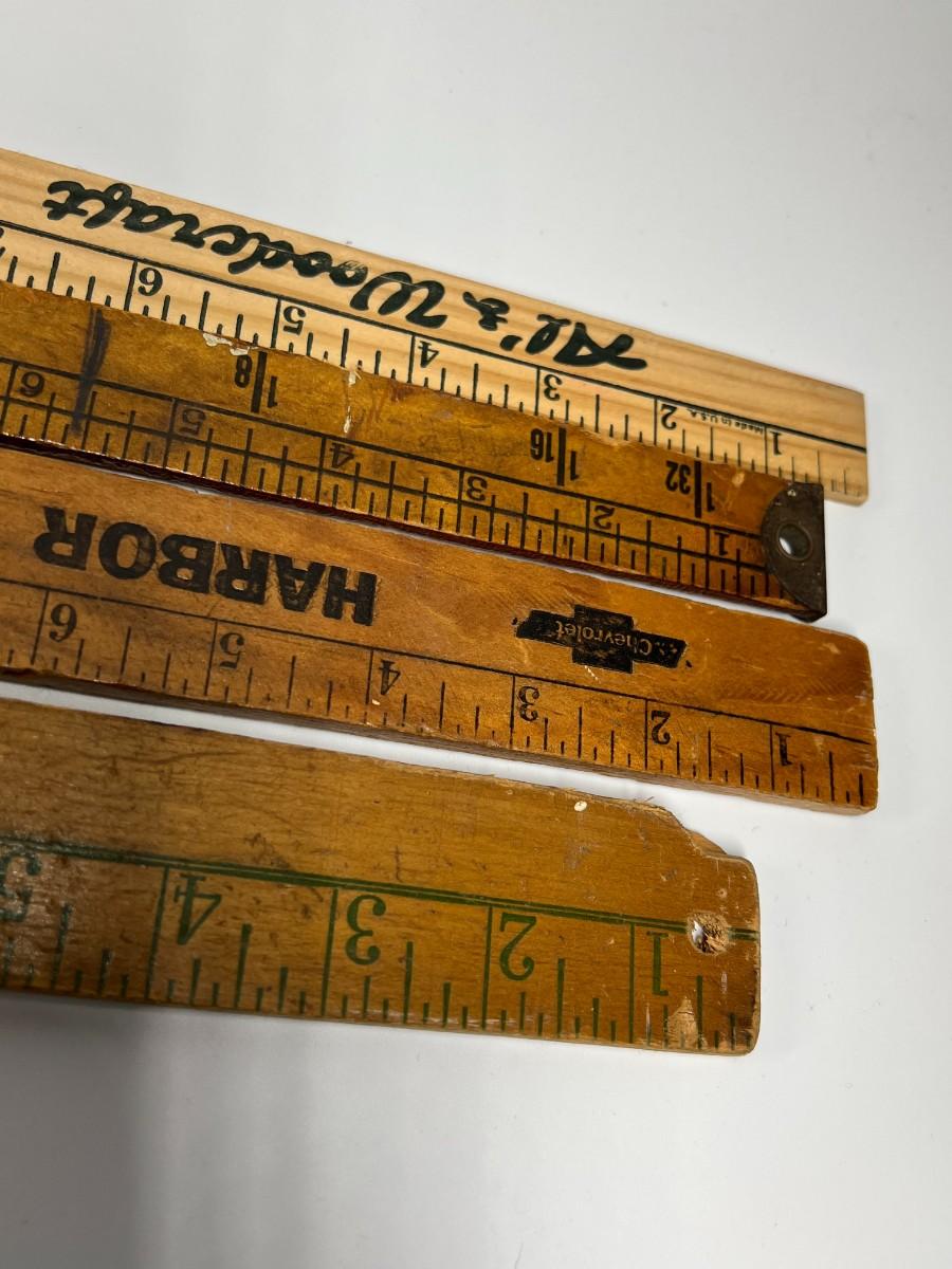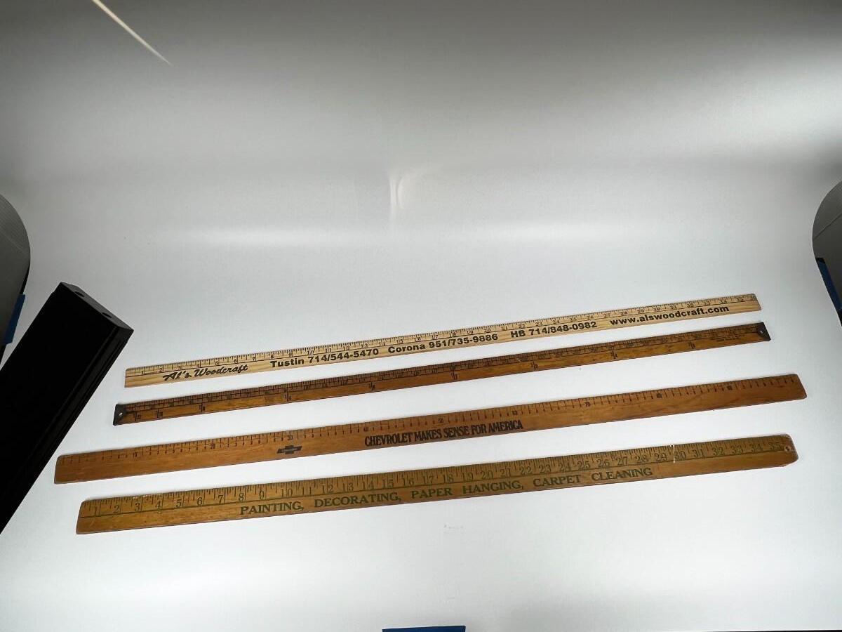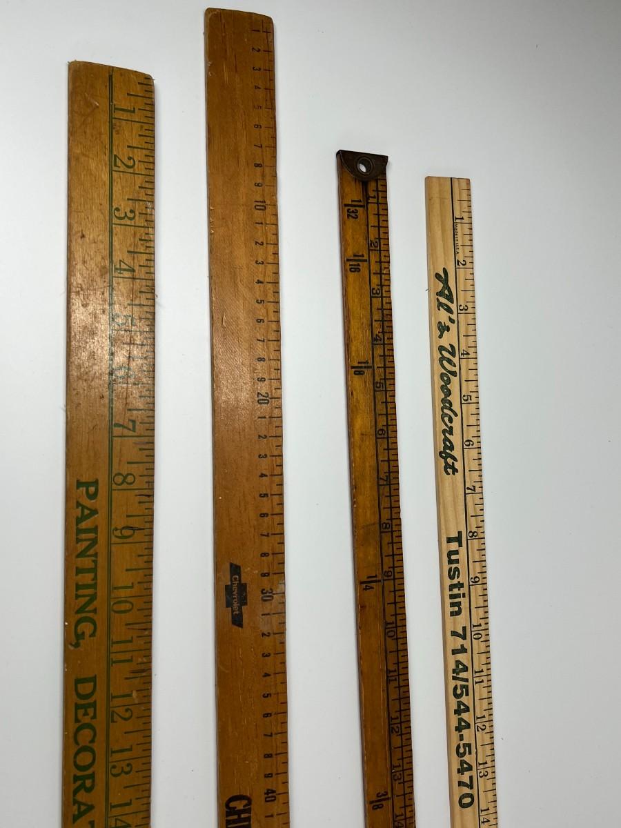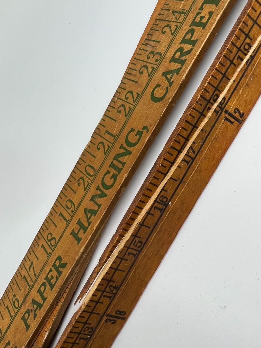 Lot of Vintage Wooden Measuring Yardsticks, there is some cracking to the wood on one of the yardsticks, but there is no signifncant damage and is in overall good useable condition. Check pictures for more details and for sizing.