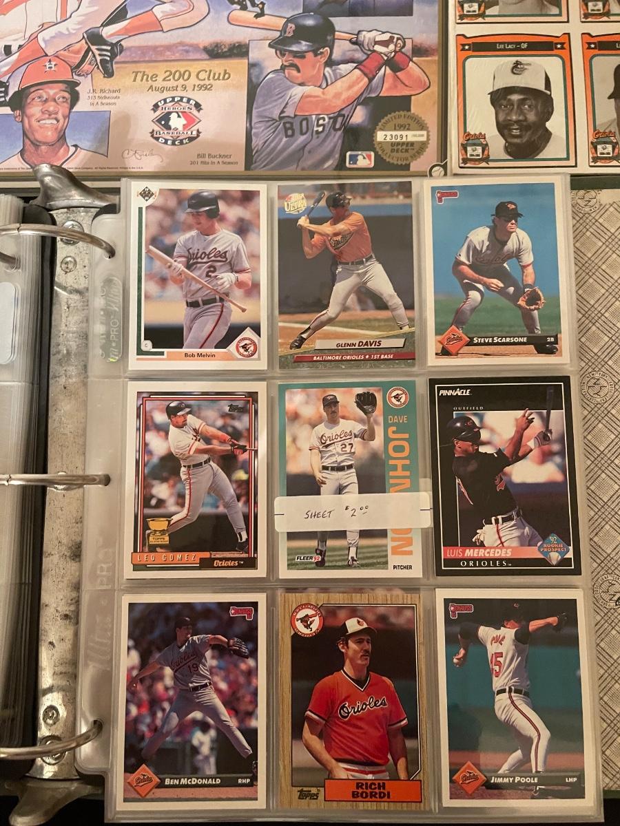 Entire album with 42 pages of all O's cards, sponsered by surf O's baseball card collectibles, "The zoo club limited edition upperdeck 1992, special edition O's baseball card set.